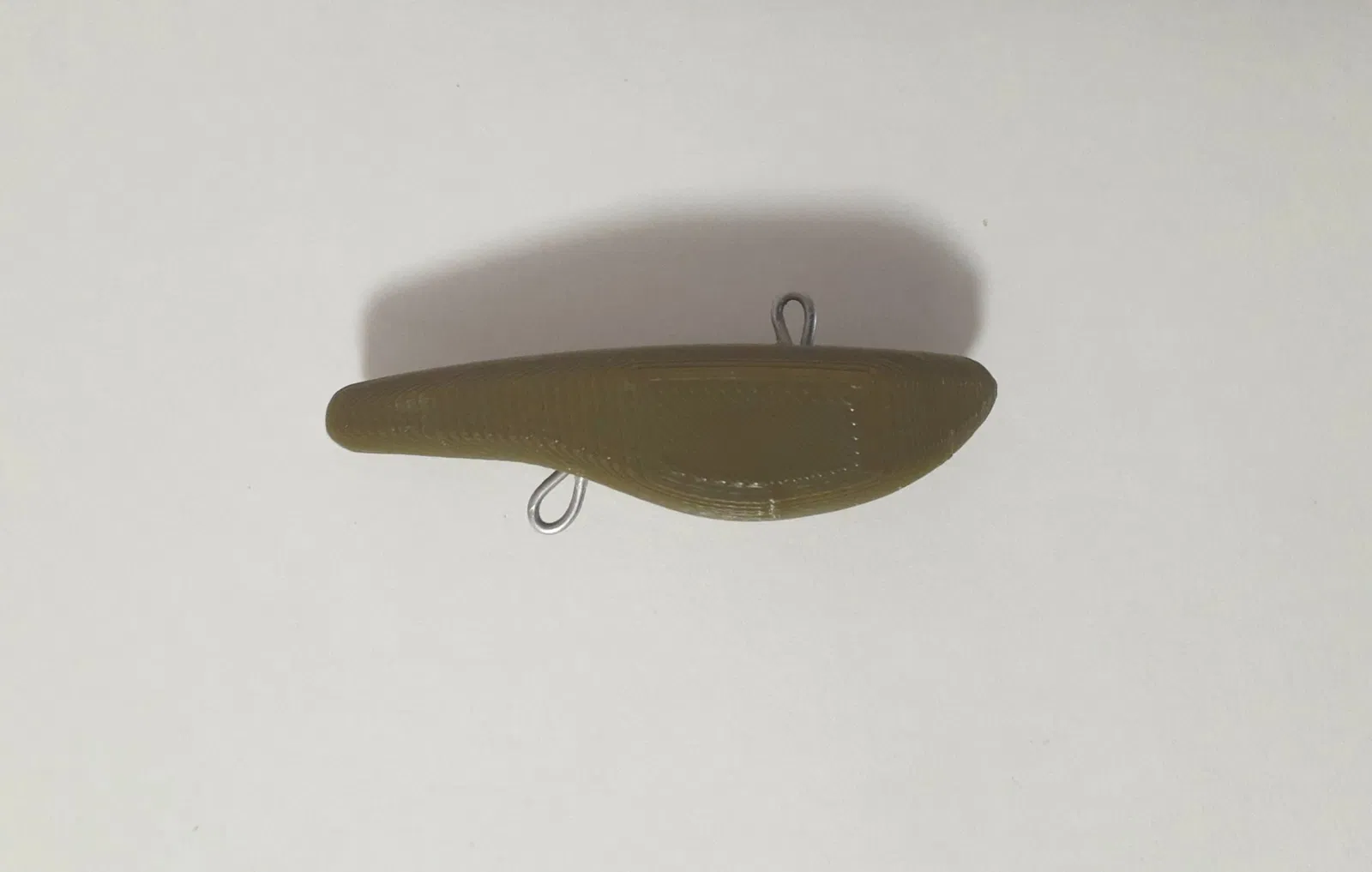 - Glue wire and BBs (for weight) into the bait and glue the two halves together.