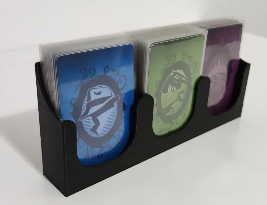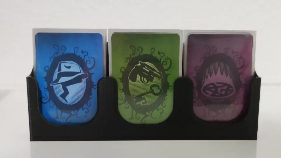 Giá đỡ 3 bộ bài cho thẻ kích thước Mini USA, đặc biệt là cho thẻ tài sản của game Arkham Horror phiên bản thứ 3. In ấn dễ dàng với các cài đặt được đề xuất.