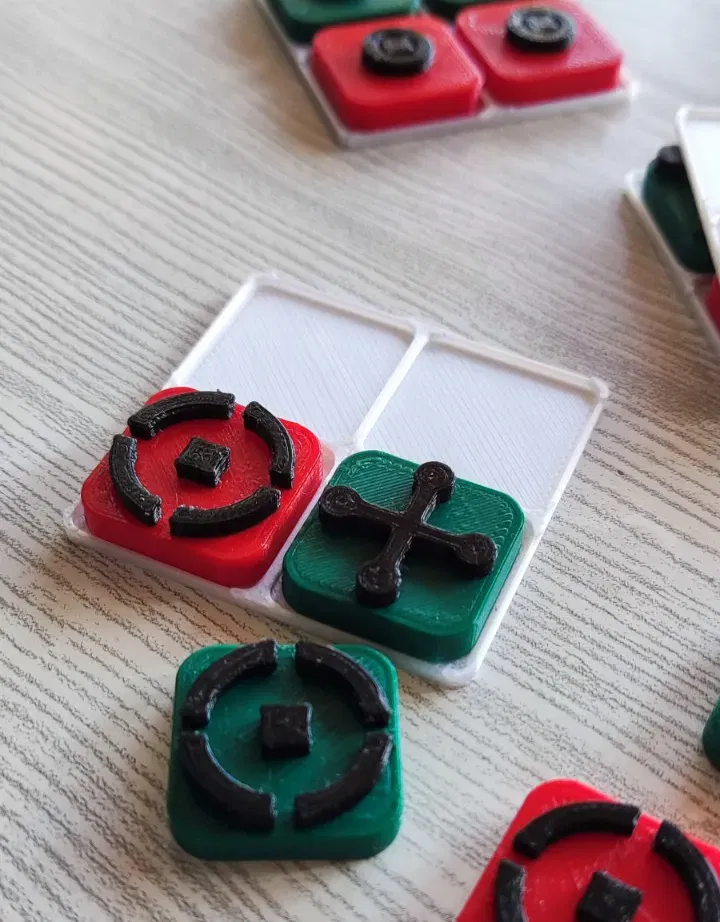 El juego estándar se juega en una cuadrícula cuadrada de 4 x 4. Cada jugador tiene ocho piezas, dos de cuatro símbolos diferentes. Cada pieza, cuando se juega, determina dónde tu oponente puede jugar su próxima pieza.
