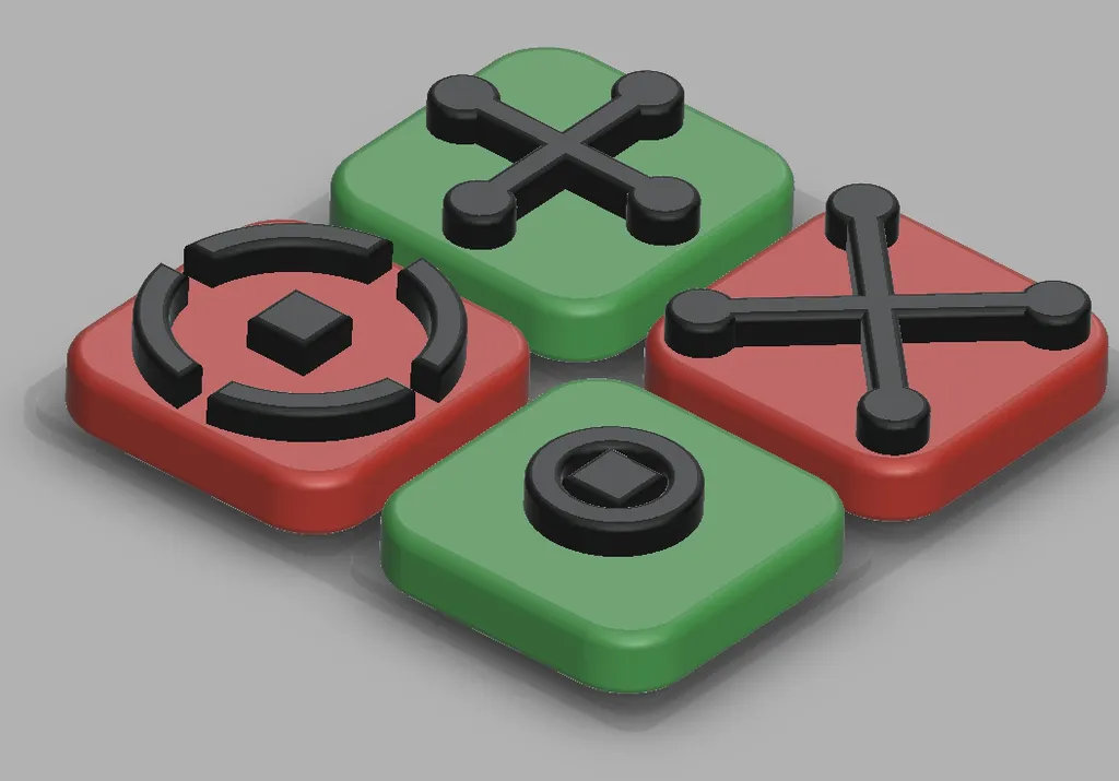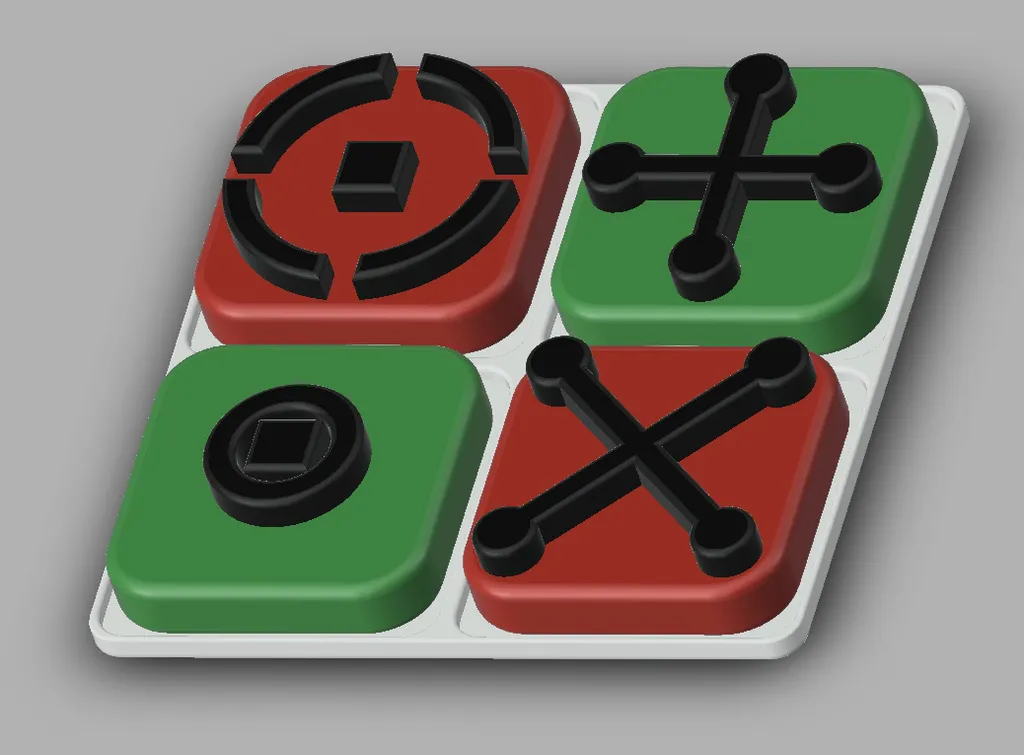 The standard game is played on a 4 x 4 square grid. Each Player has eight pieces with two of four different symbols. Each piece when played determines where your opponent can play their next piece.