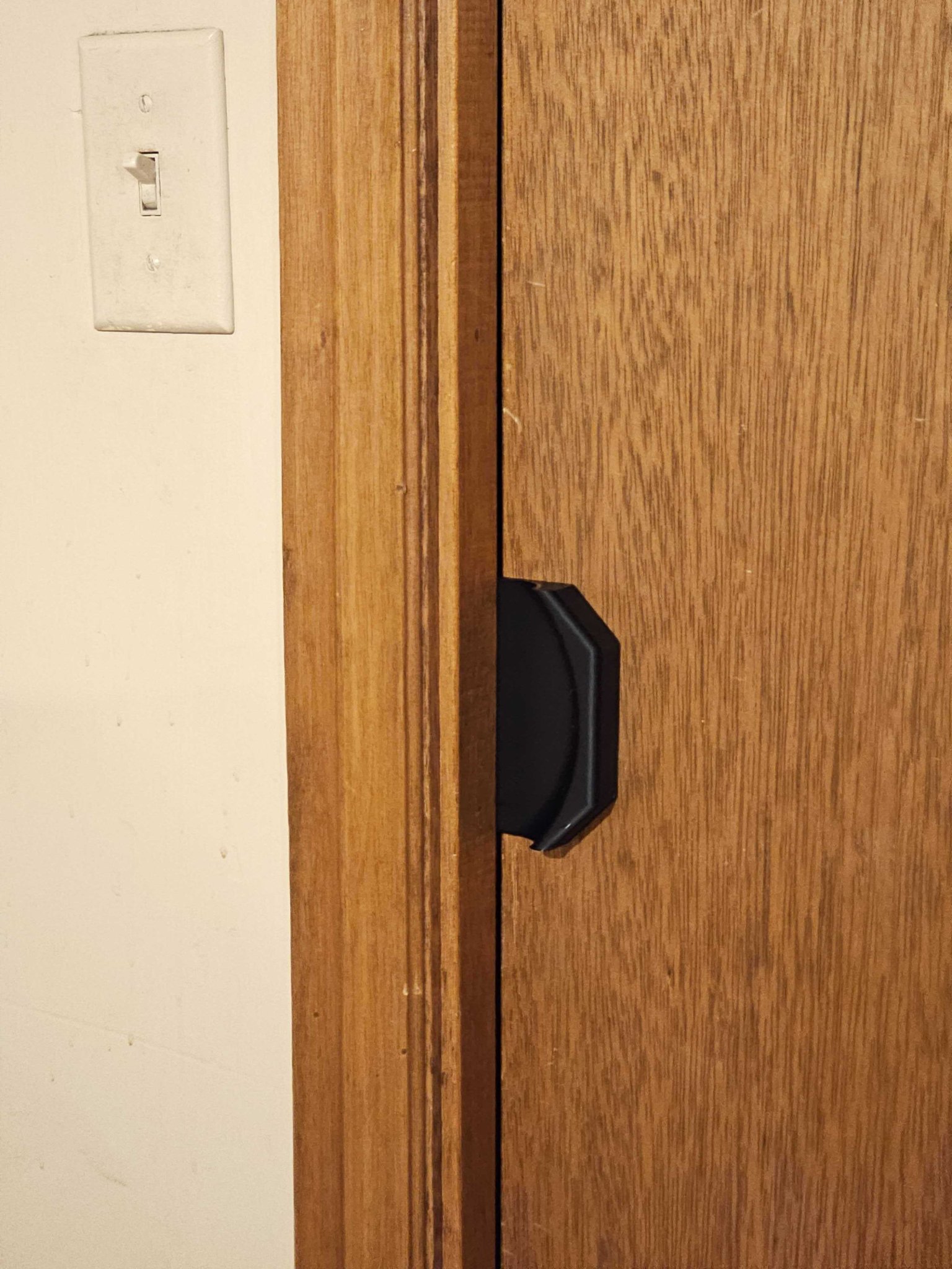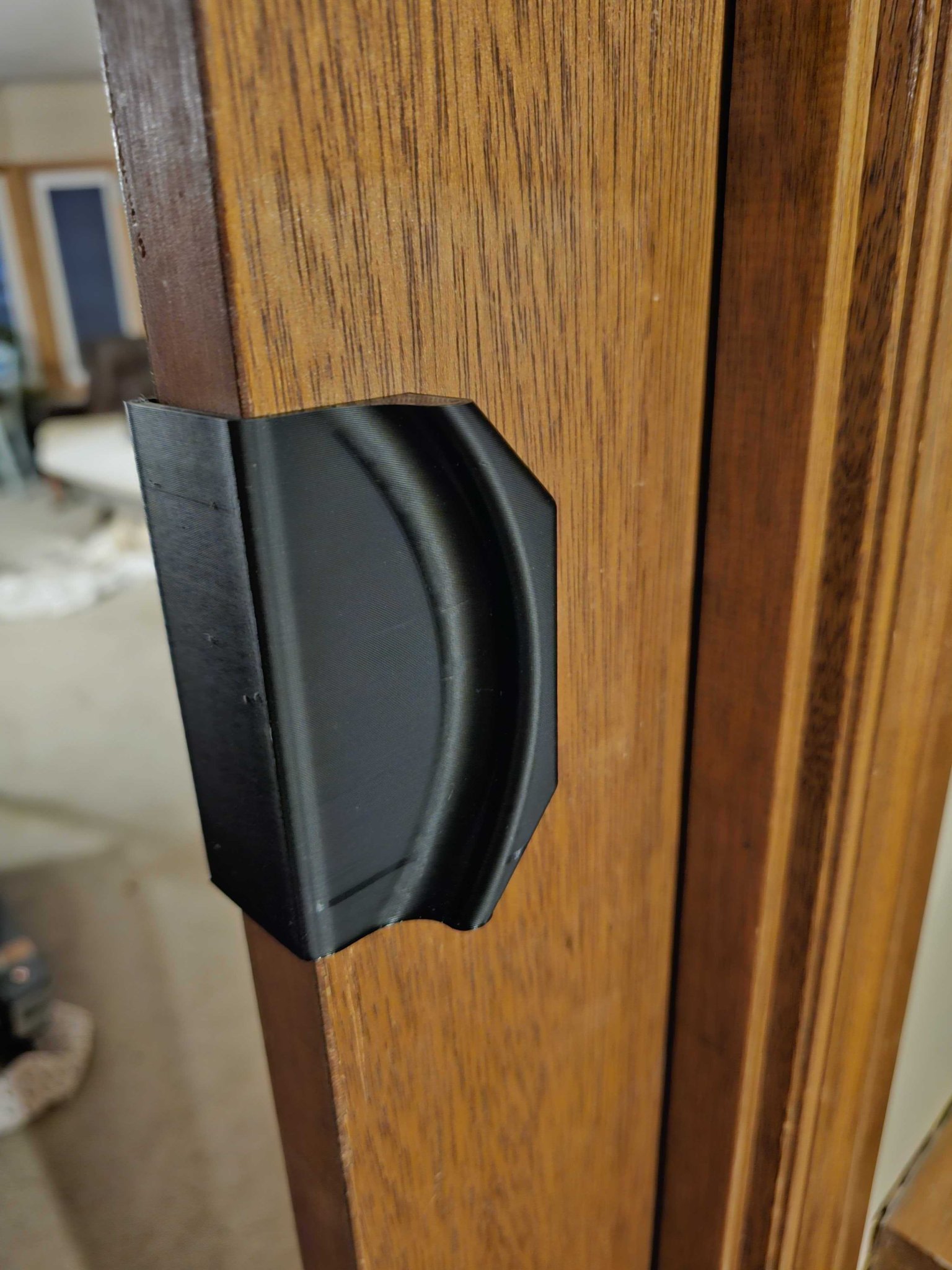 Tay nắm cửa lùa Pocket Door, giúp mở đóng dễ hơn và chống rung lắc. Kích thước cho cửa 34.2mm, khe 39mm. Có thể khoan vít hoặc dán băng keo. In không cần support.