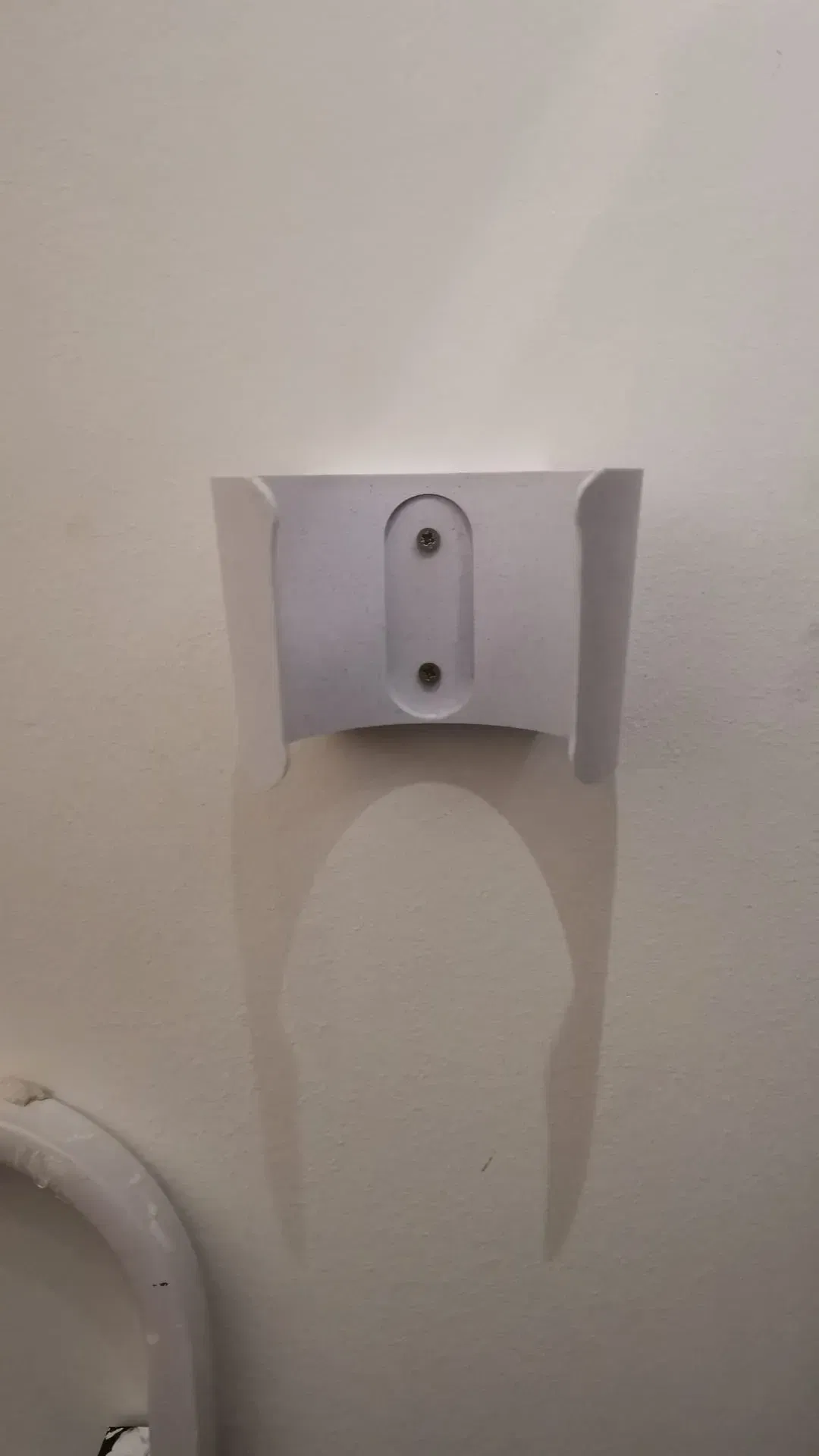 Để gắn cái đế lên tường, bạn sẽ thấy hai lỗ có sẵn ở mặt sau, chỗ đó bạn có thể dùng hai con vít M3 để bắt vô. Bạn nhớ cẩn thận khi cầm cái đế nha, dù nó đã được thiết kế với độ dày vật liệu đủ để không bị gãy, nhưng mà cẩn thận vẫn hơn.