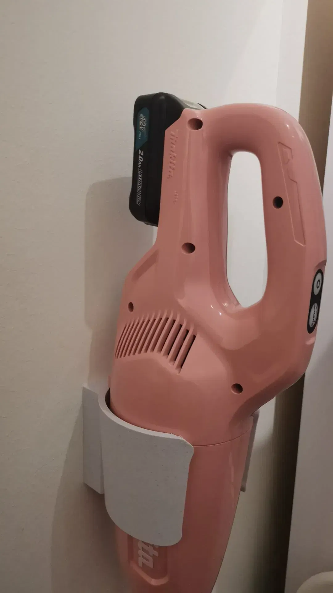 Xin chào mọi người, đây là cái đế treo tường tiện lợi được thiết kế riêng cho Máy Hút Bụi Cầm Tay Chạy Pin 12V Makita CL108FDZW. Cái đế này được làm ra để giữ máy hút bụi, cùng với cục pin của nó, chắc chắn trên tường để dễ dàng cất giữ và lấy ra xài.