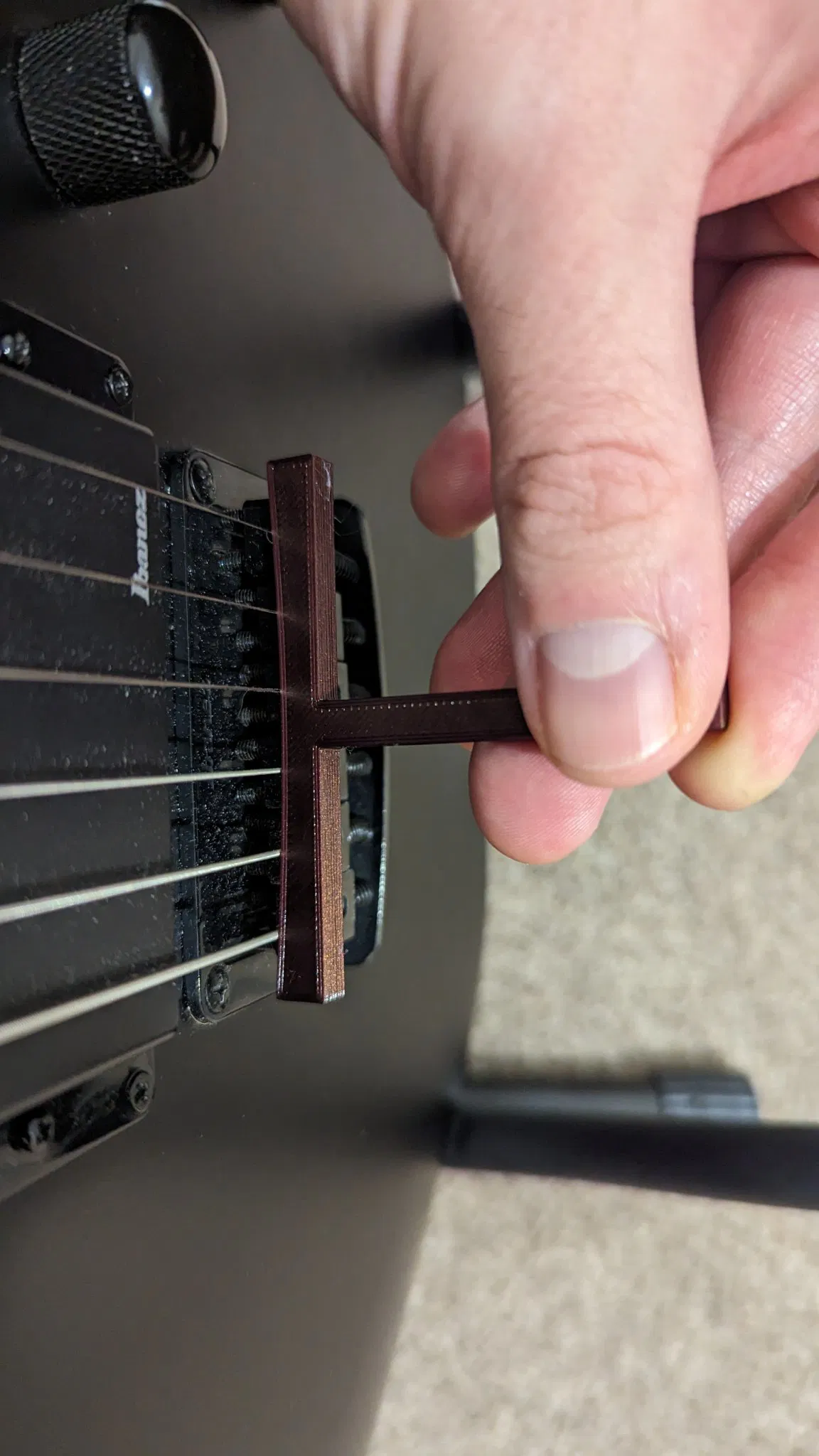 Mấy cây guitar điện (như cây Ibanez GRG121 Gio của tui) có bán kính cần đàn là 400mm (15.748 inch). Cái cữ đo này giúp bạn đo chính xác bán kính cần đàn đó.
