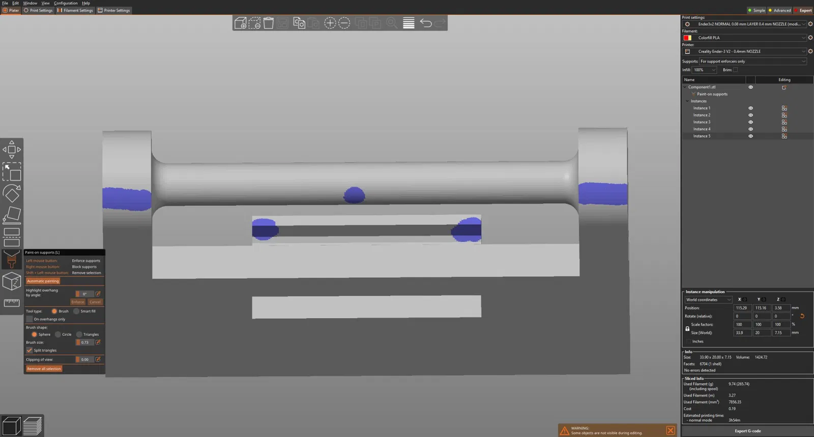 Một cái kẹp thay thế cho hộp đựng của một dụng cụ dremel hàng hiệu. In bằng vòi phun 0.4 với chiều cao lớp 0.08. Thêm hỗ trợ ở những chỗ được thể hiện trong hình.