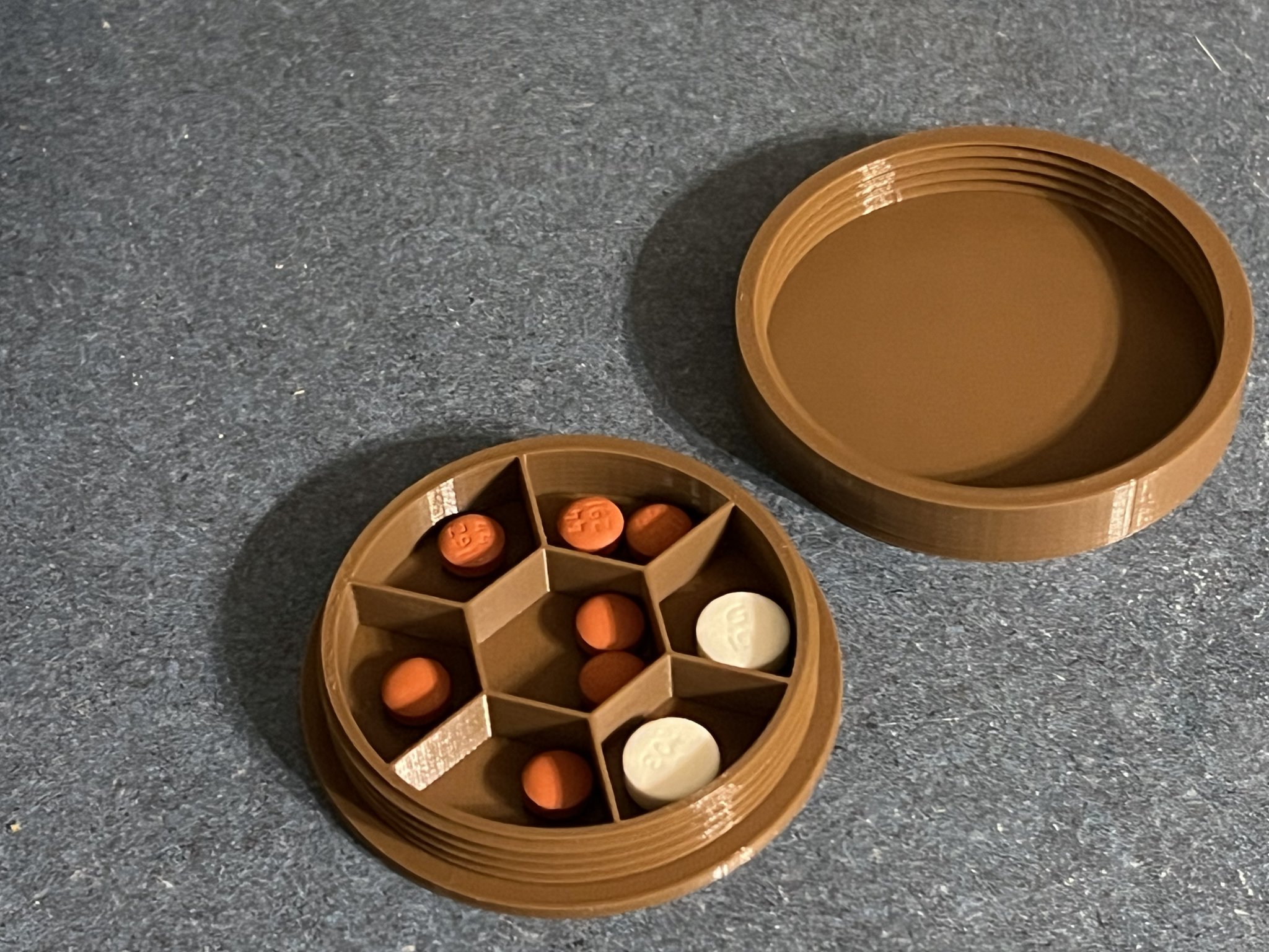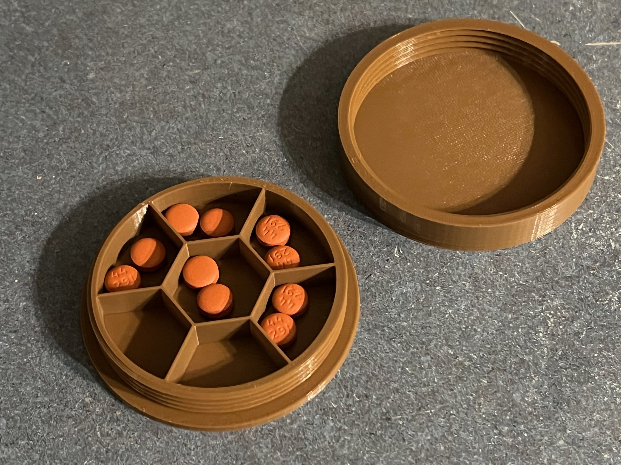 Một hộp chứa đơn giản để lưu trữ bất cứ thứ gì bạn muốn mà bạn có thể ném vào túi của mình. Mỗi ngăn có thể chứa một vài viên thuốc để giữ một nguồn dự trữ trong túi của bạn hoặc 7 ngày thuốc cho cả tuần.