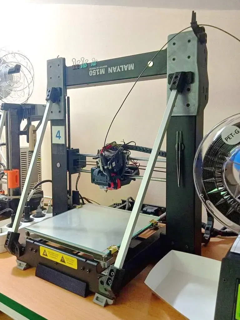 Cần mua vật tư để nâng cấp khung Malyan M150, giúp tăng chiều cao in Z lên khoảng 180-190mm. Hướng dẫn lắp ráp chi tiết kèm hình ảnh, yêu cầu khoan thanh nhôm và sử dụng các bộ phận in 3D. Có tùy chọn cho đầu in hotend khác.