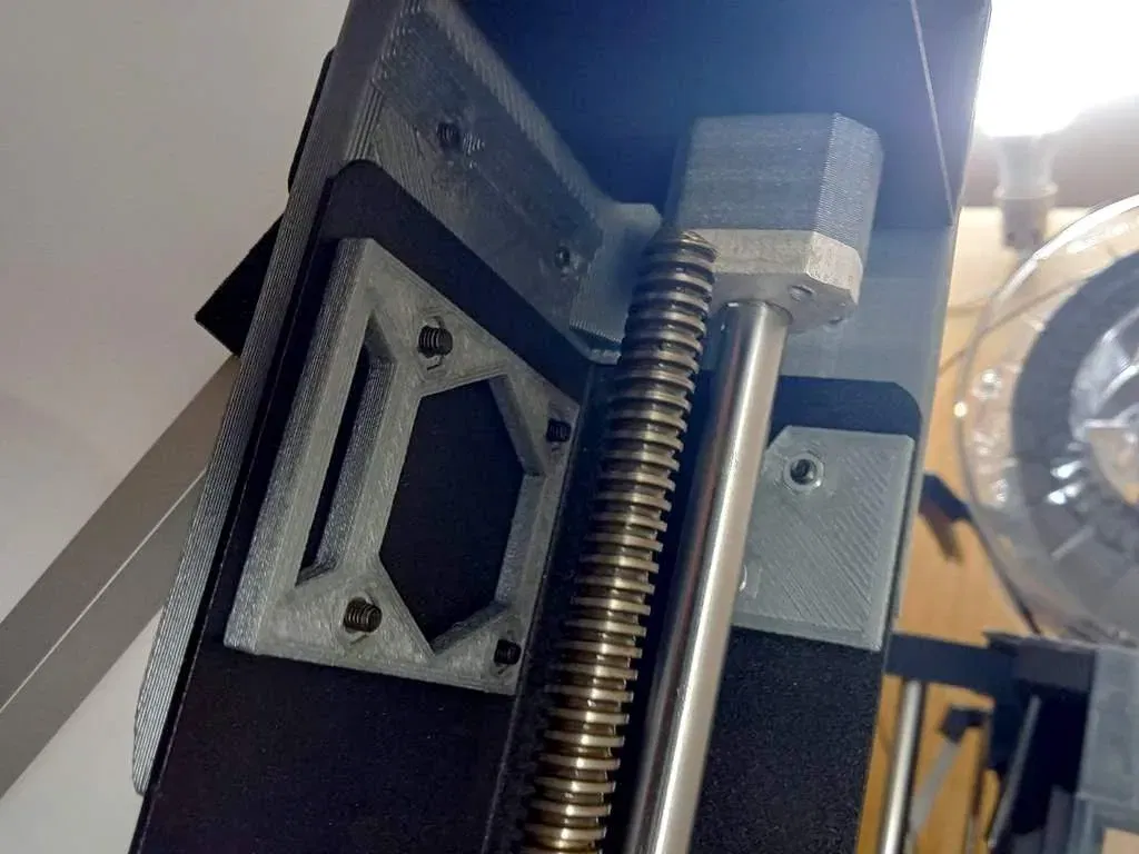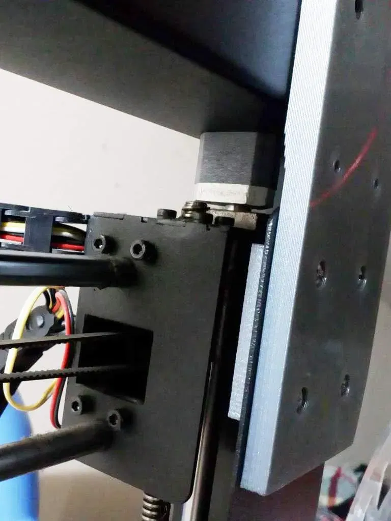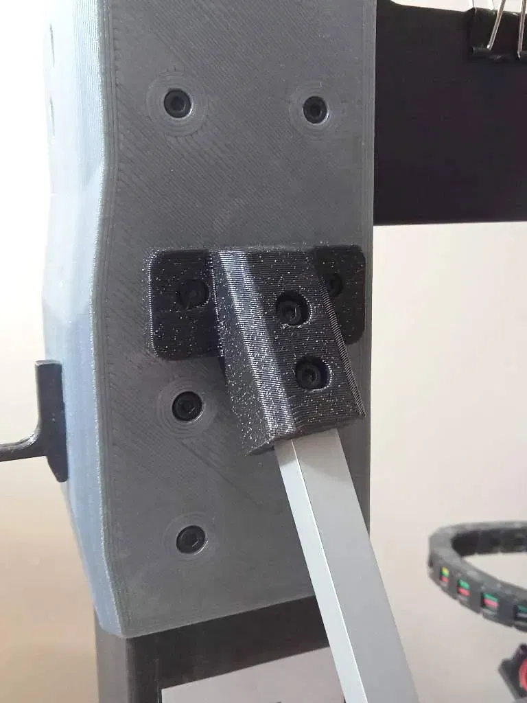 Sau đó, vặn 'khung gia cố trên' vào một đầu của thanh nhôm profile và vào phần Z của khung máy in. Sau đó đặt 'khung gia cố dưới' lên thanh profile và vặn nó vào phần Y của khung máy in. Cuối cùng, vặn 'khung gia cố dưới' bằng vòng đệm (nếu có).