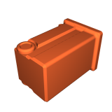Thùng rác cho xe quét rác, kích thước 26x32x43mm. Vật liệu PLA, dùng một đoạn dây tóc dài 21mm làm chốt nối giữa nắp và thùng.