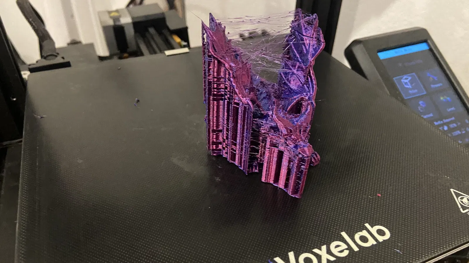 In ra với PLA 3D Jake "ma thuật". Tui khuyên mọi người nên scale lên ít nhất 150% cho dễ gỡ support nha. Và dĩ nhiên là bật chế độ fuzzy skin lên, bề mặt sẽ đẹp mắt hơn nhiều.