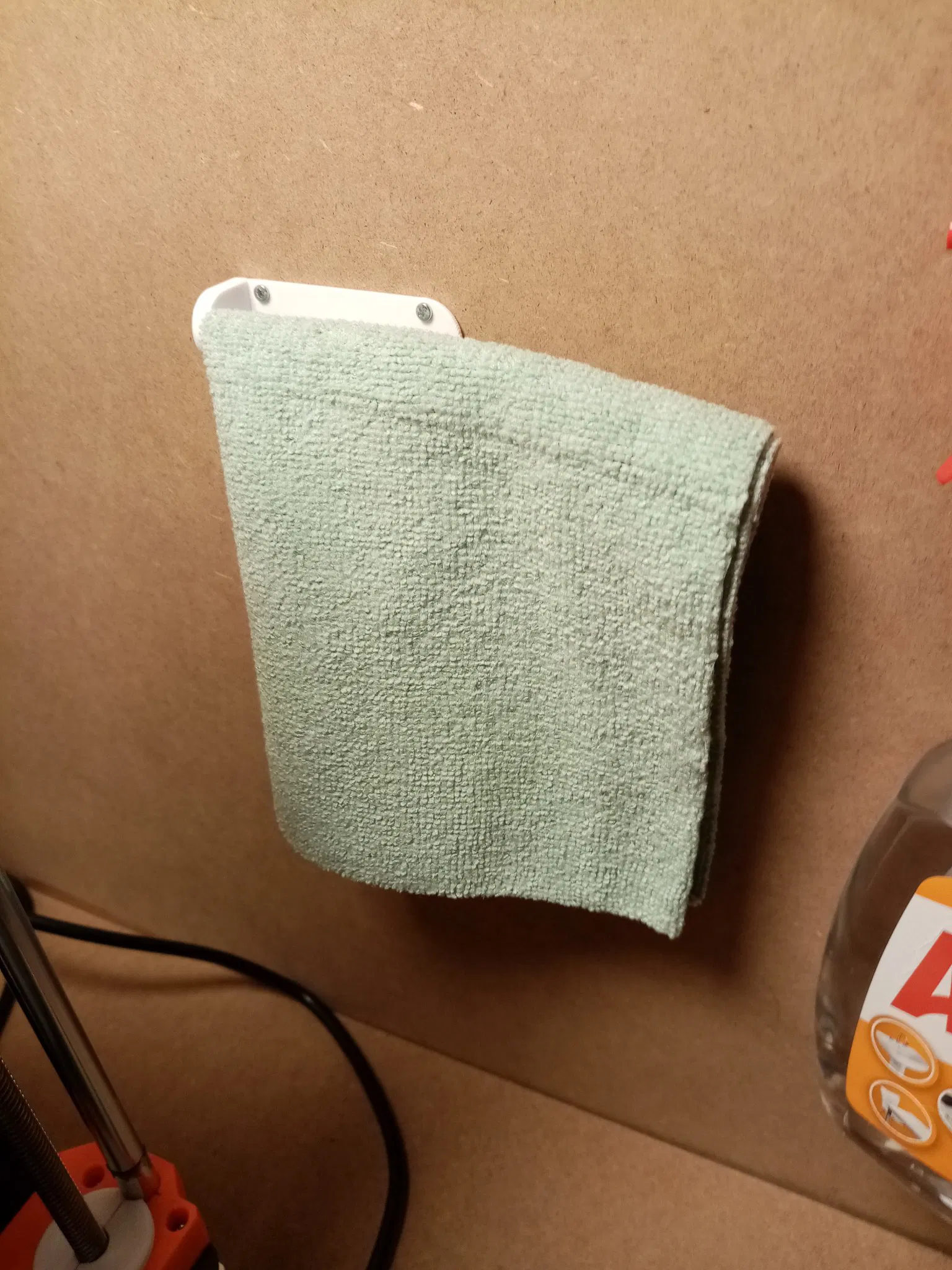 Móc giữ khăn lau hoặc vải để vệ sinh bàn in. Cái này có thể để vừa chai xịt vệ sinh, khăn lau và tấm kim loại phụ của bạn vô trong hộp máy in.