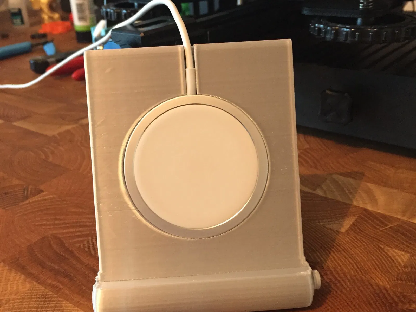 Vợ tui bả nhờ làm cái đế để dựng cái iPhone 15 nằm ngang á, để bả sạc pin mà coi phim cho tiện. Cái đế này nó giữ cục sạc MAG SAFE zin bựm luôn nha.