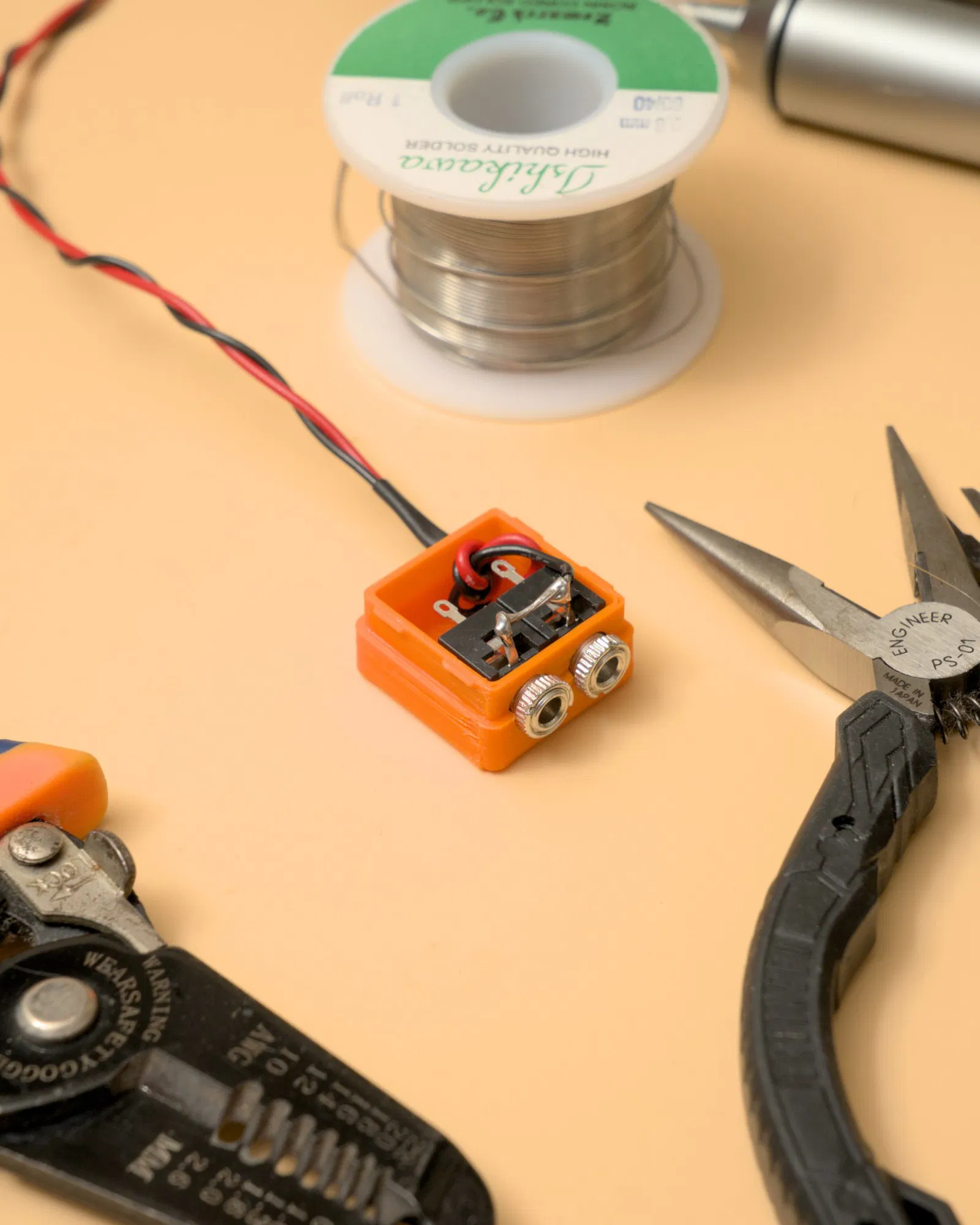 Bộ chuyển đổi thay thế đầu dò cho DSO138Mini Oscilloscope, cho phép kết nối cáp vá 3.5mm. Dùng hai jack 3.5mm ghép lại thành bộ chia thụ động. Tìm tệp trên Github.