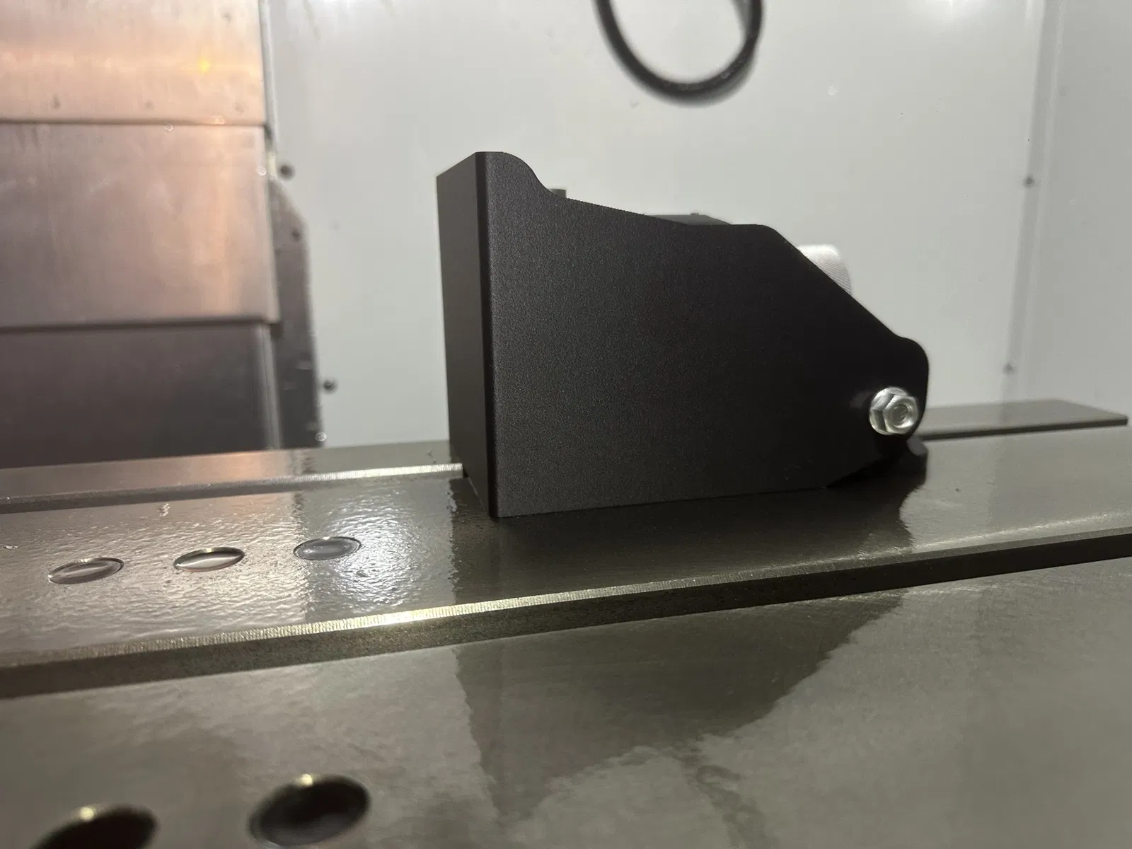 Renishaw ots shield to cover/block chips from damaging Renishaw OTS tool setter. Made a hinged lid style for moving the cover when needed.