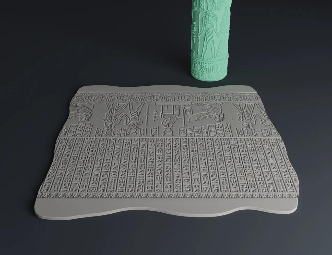 This digital 3D printable model of Stamp Rollers is meant to create patterns of Ancient Egyptian walls on terrains for Dungeon and Dragons! It can be used on modeling putty, clay, or XPS polystyrene. Or you can use it to create seriously ancient and cool-looking cookies 😋 More amazing terrain rollers and DnD accessories ->>> DnD Collection We would love to hear what other patterns we should make! You can let us know in this google form: https://forms.gle/vwLaZ22MVDUUJer59 SIZE The roller is 15 cm high and the length of the pattern is 10 cm (6×4 squares, each 2.5 cm). At 100% scale, the roller’s dimensions are approximately: - Width 30 mm - Length 30 mm - Height 150 mm You can scale the model as you wish, but we can’t guarantee that the model will print well at a much smaller size. You can use the roller to create an amazing large wall or use just some parts of the roller. You can also combine it with cutters to create tombstones etc. These models were brought to life by 3Demon. We are a group of modeling and 3d printing enthusiasts based in Prague, Czech Republic. We’ve been making 3D printable models for more than a decade. We make a lot of cosplay accessories but we also make all sorts of interesting 3D models. You can join our community or just look at more of our creations here: https://3d-mon.com/links/ #### 3D PRINTING SETTINGS This roller is designed for SLA printers. You can print it on FDM too, but it can be a bit tricky. If you decide to print on FDM, use these settings: - Layer height 0.15 mm - Infill 10% - Outer perimeters: 0.35 mm - Retractions: OFF Printing settings will vary greatly depending on your specific printer. 💛 If you like our work, please, consider joining our F3D Club to access hundreds of rollers! 💛