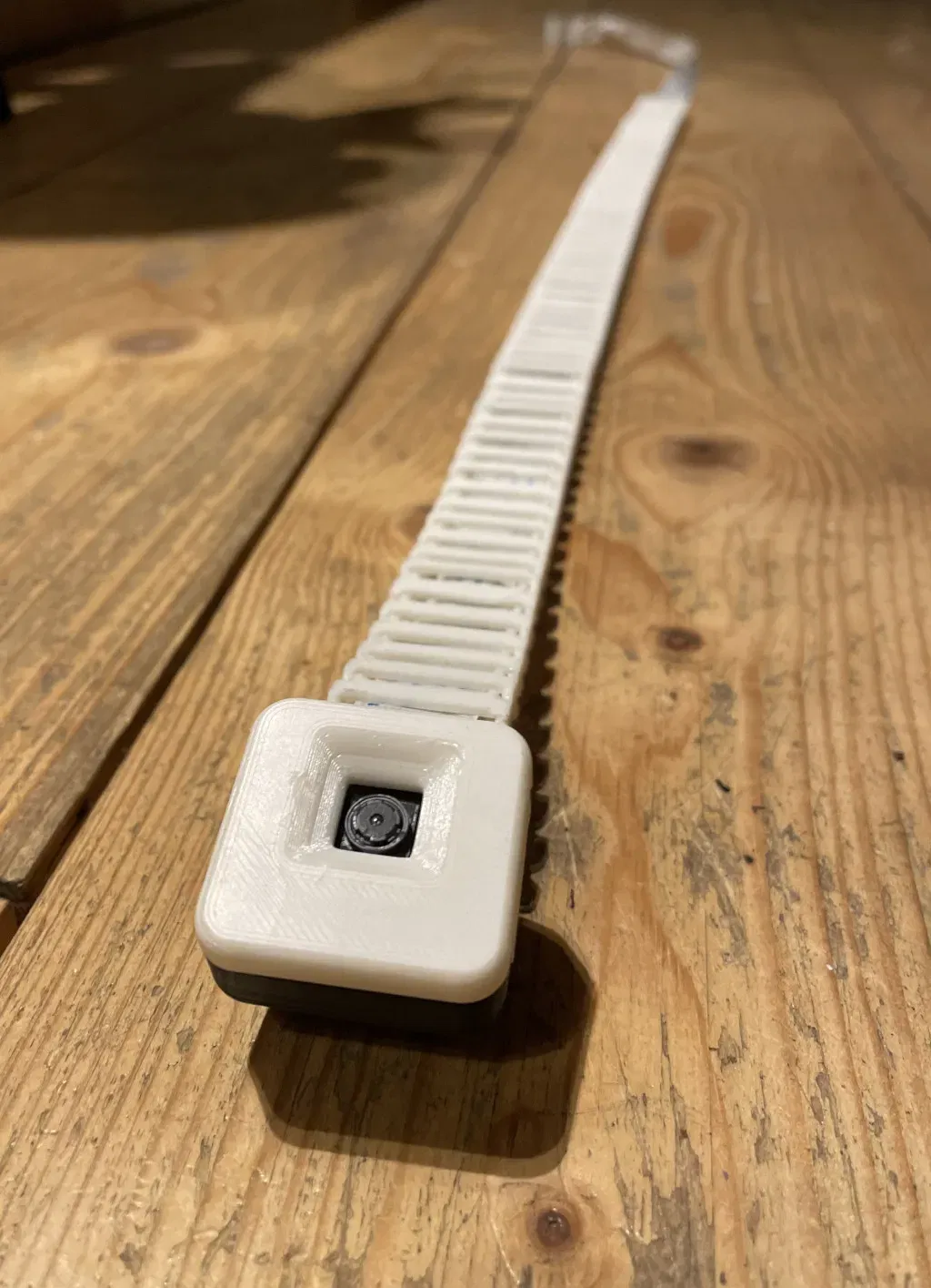 Các mảnh kết nối cho một chuỗi cáp được gắn vào giá treo camera Raspberry Pi.