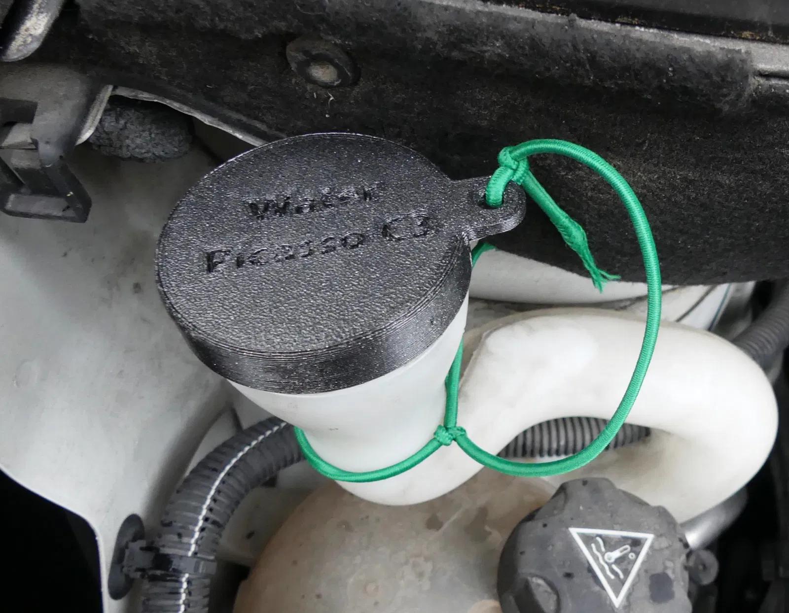 Một cái nắp đơn giản cho bình nước rửa kính chắn gió của xe Citroen Picasso C3. Nắp có độ khít hơi lỏng nhưng được giữ bằng dây nên không sợ bị rơi mất. Chế tạo từ PLA, file STL có sẵn để tải về.