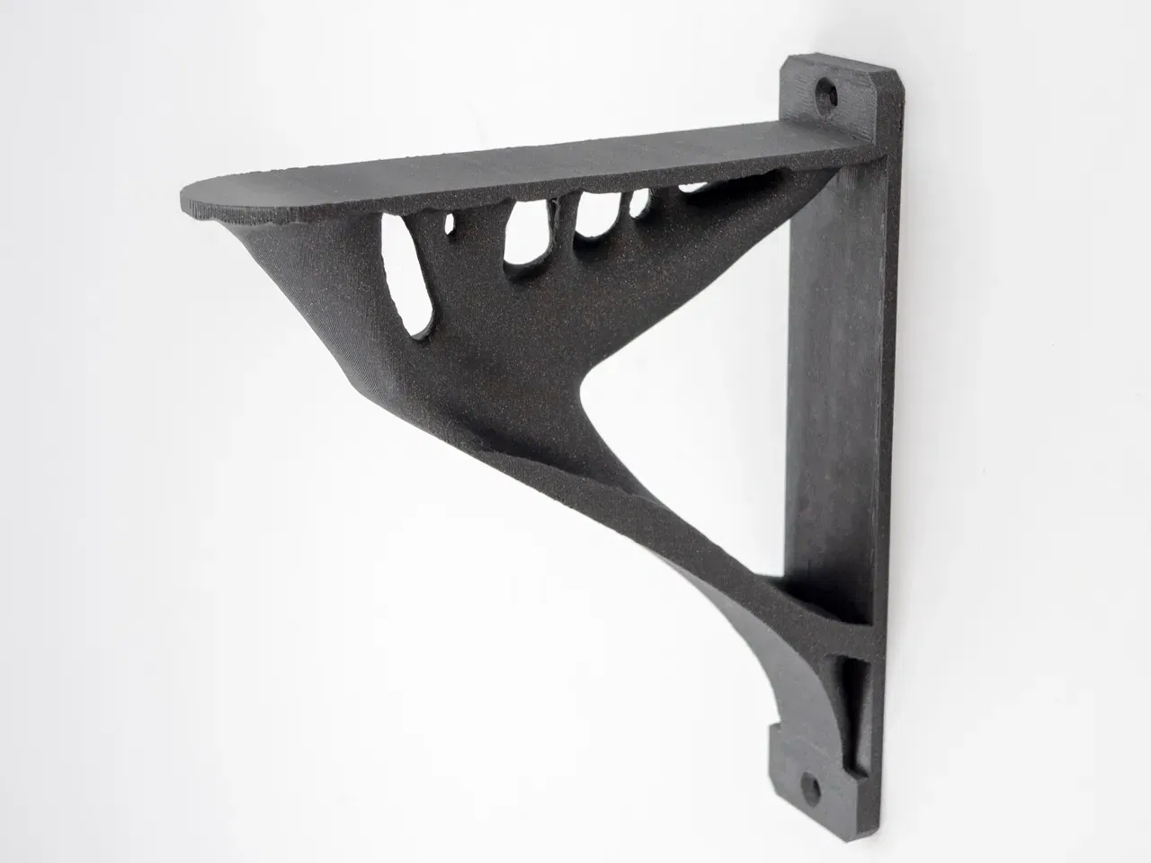 Kệ sách được thu nhỏ 66% so với bản gốc, nhưng vẫn giữ nguyên kích thước tấm nền 10mm và lỗ vít chìm 5mm. Thiết kế tối ưu hóa topology giúp tiết kiệm vật liệu mà vẫn đảm bảo độ chắc chắn.