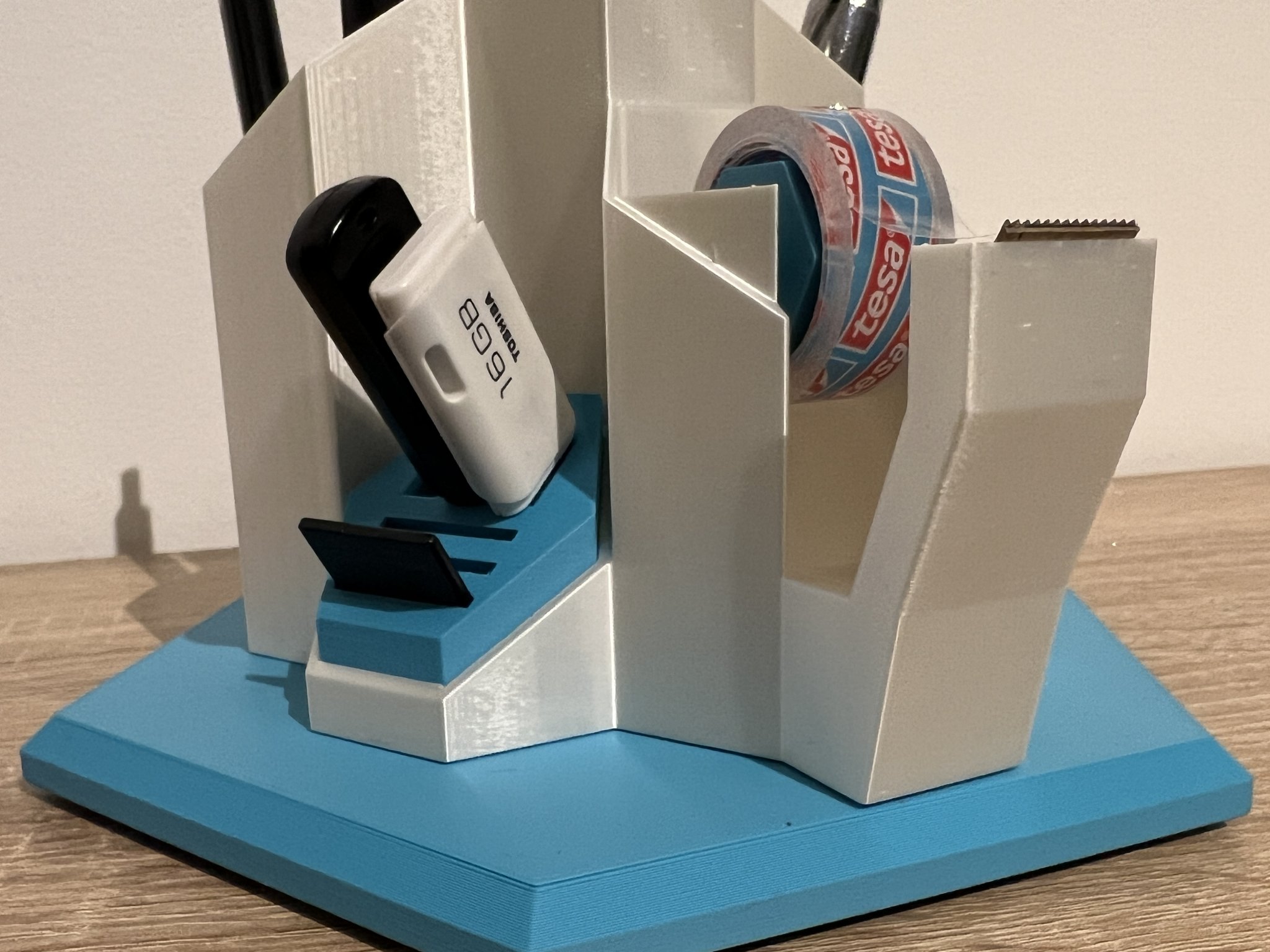 A sturdy and stylish organizer that has been designed for 3D printing and can be rotated for easy access to your daily stationary - or even be used as a fidget spinner to reduce stress while sitting at your desk speaking to those difficult customers :)