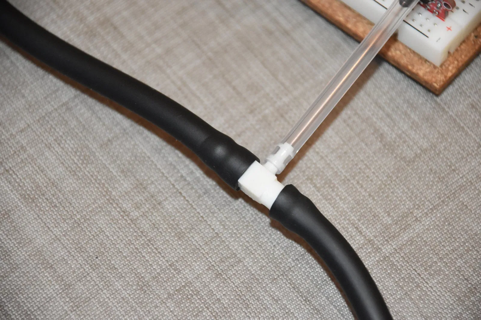 Cảm biến áp suất được kết nối thông qua ống 3x5 mm bằng cổng nhỏ hơn trên Đầu nối ống.