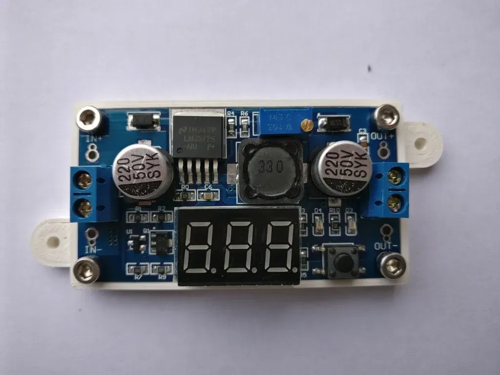 Đây là bản chỉnh sửa cho mạch tăng áp LM2577 DC có màn hình LED kích thước 35x66mm, vừa khít bo mạch. Gắn PCB bằng ốc m3x4, dời ốc ra góc để dễ thao tác. In bằng PLA với độ phân giải 0.1, infill 25%.