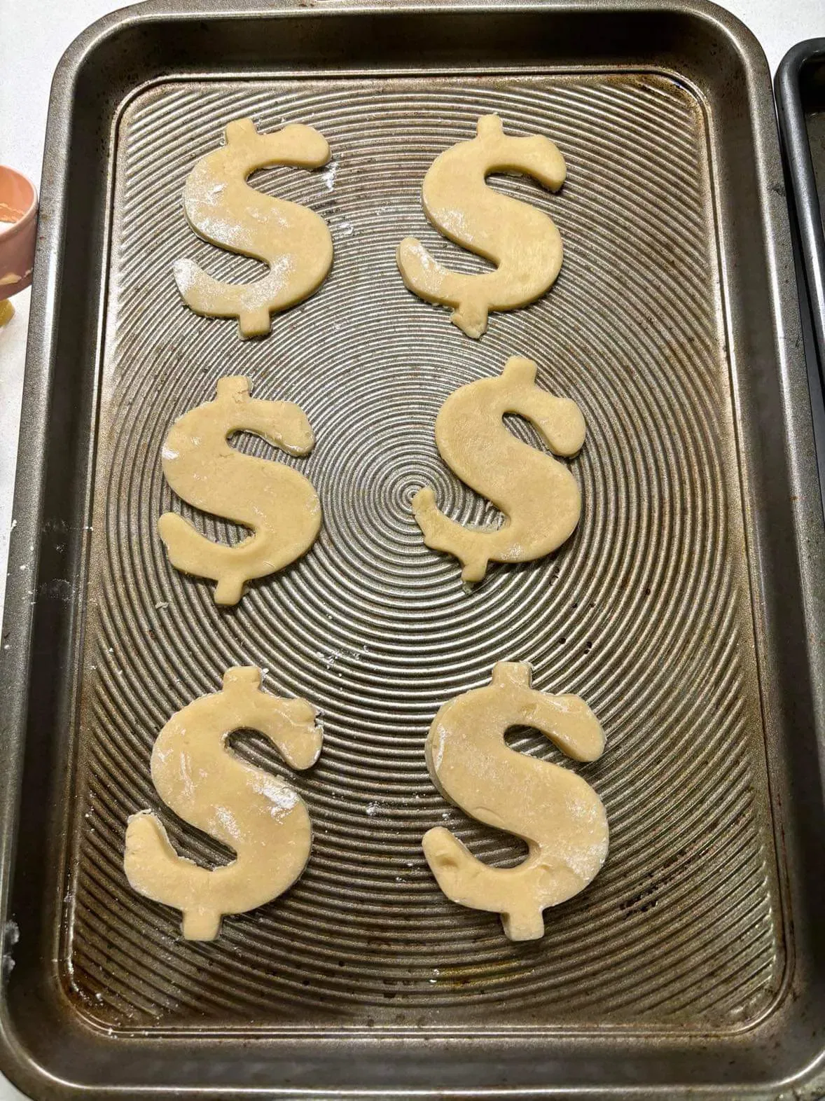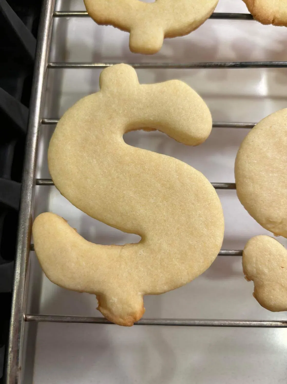 Khuôn cắt bánh hình dấu đô la (font Cooper Black).