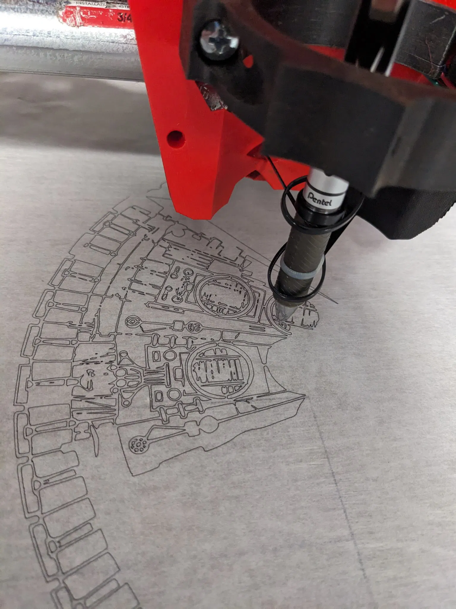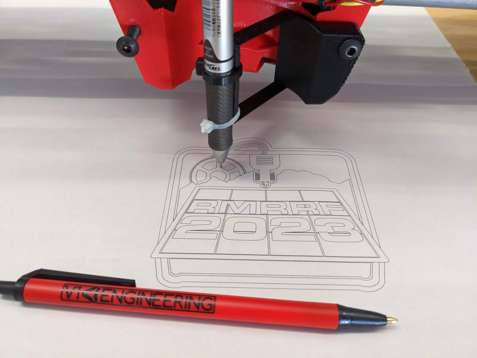 Dùng để gắn cây bút cho máy CNC LowRider 3, khi anh em chỉ cần dùng bút mà không cần router. Giữ cho mọi thứ gọn gàng bằng dây rút và lưu ý chỉ dùng lực nhẹ tay khi viết.