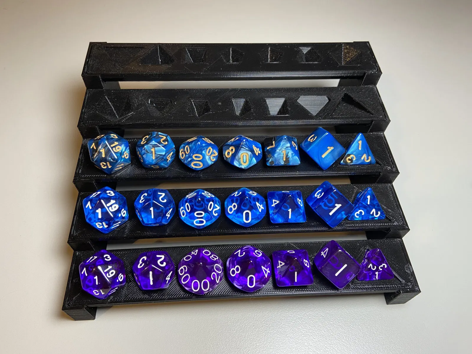 Chỉnh sửa thiết kế của Sablebadger để in không cần support, dùng keo siêu dính để lắp ráp. Mẫu kệ này giúp bạn trưng bày bộ sưu tập xúc xắc của mình một cách gọn gàng và đẹp mắt, không tốn thời gian hay vật liệu in support.