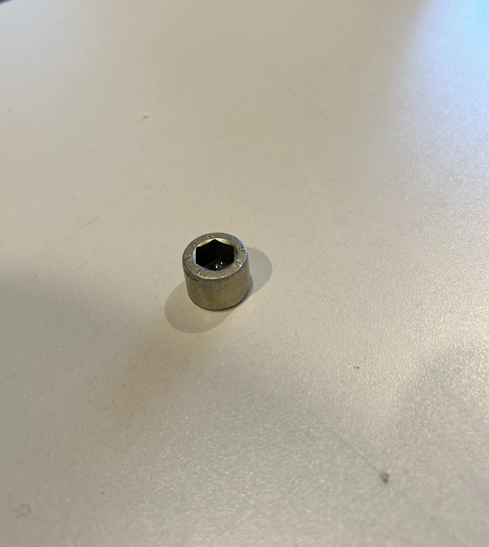 Du benötigst einen Schraubenkopf mit Innensechskant, da dieser als “Dulle” fungiert. Außerdem einen Nagel mit Spitze.