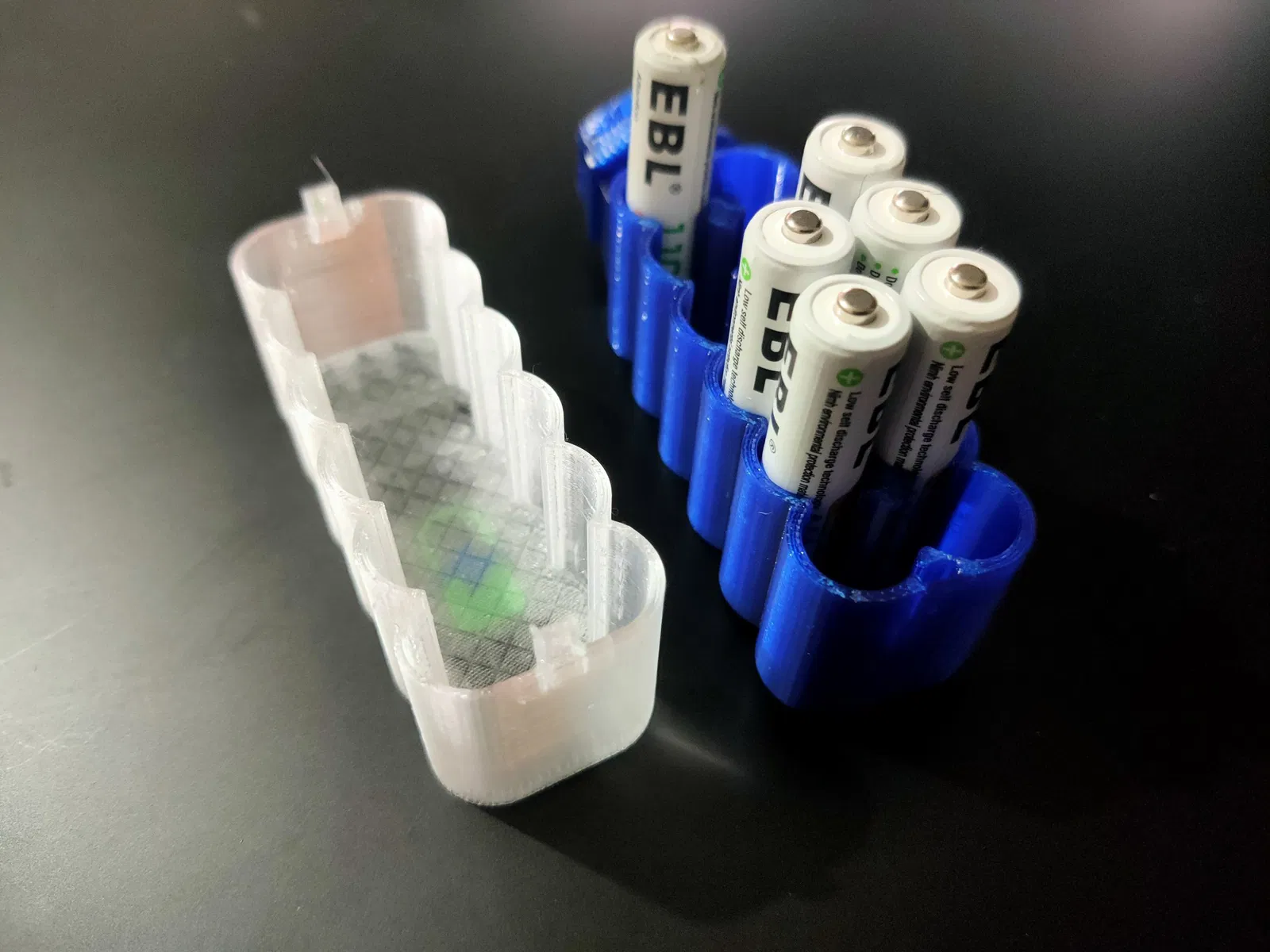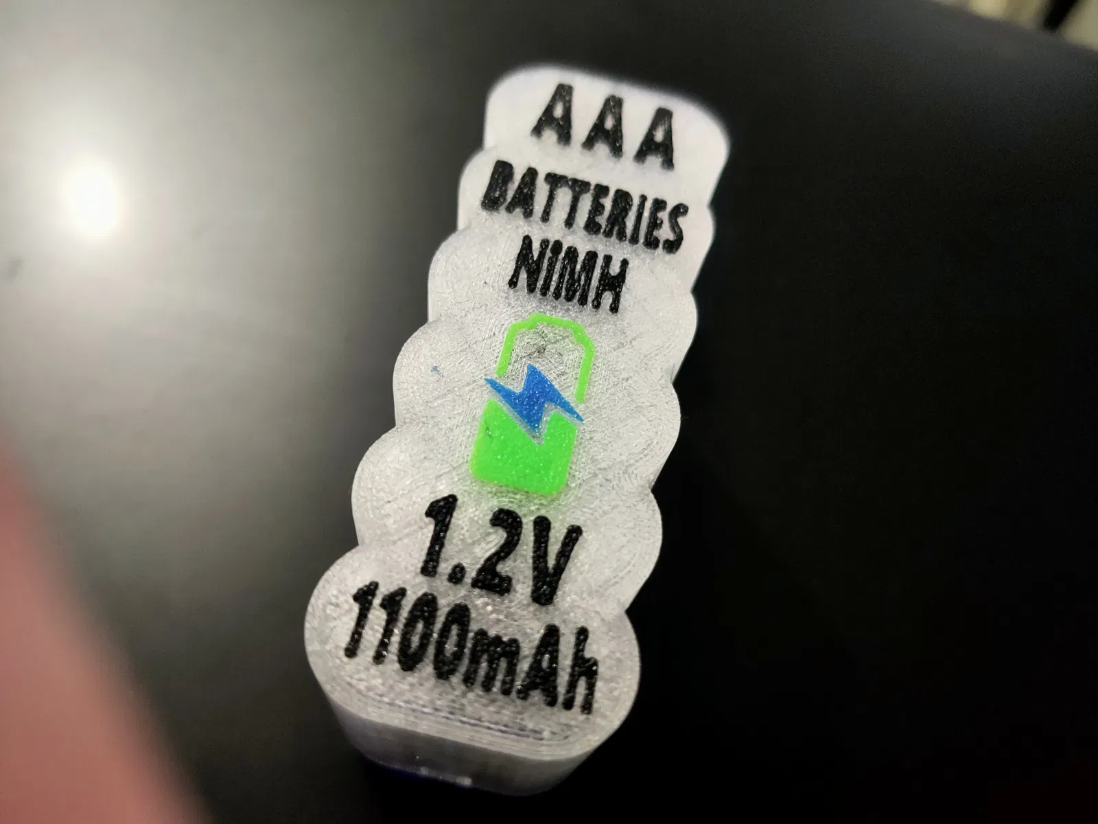 Hộp đựng pin AAA (1.2v) có nắp với biểu tượng chữ/pin, chứa được 12 viên pin. Được in từ các loại filament PETG và PLA khác nhau, với cài đặt in chi tiết cho chất lượng và độ bền.