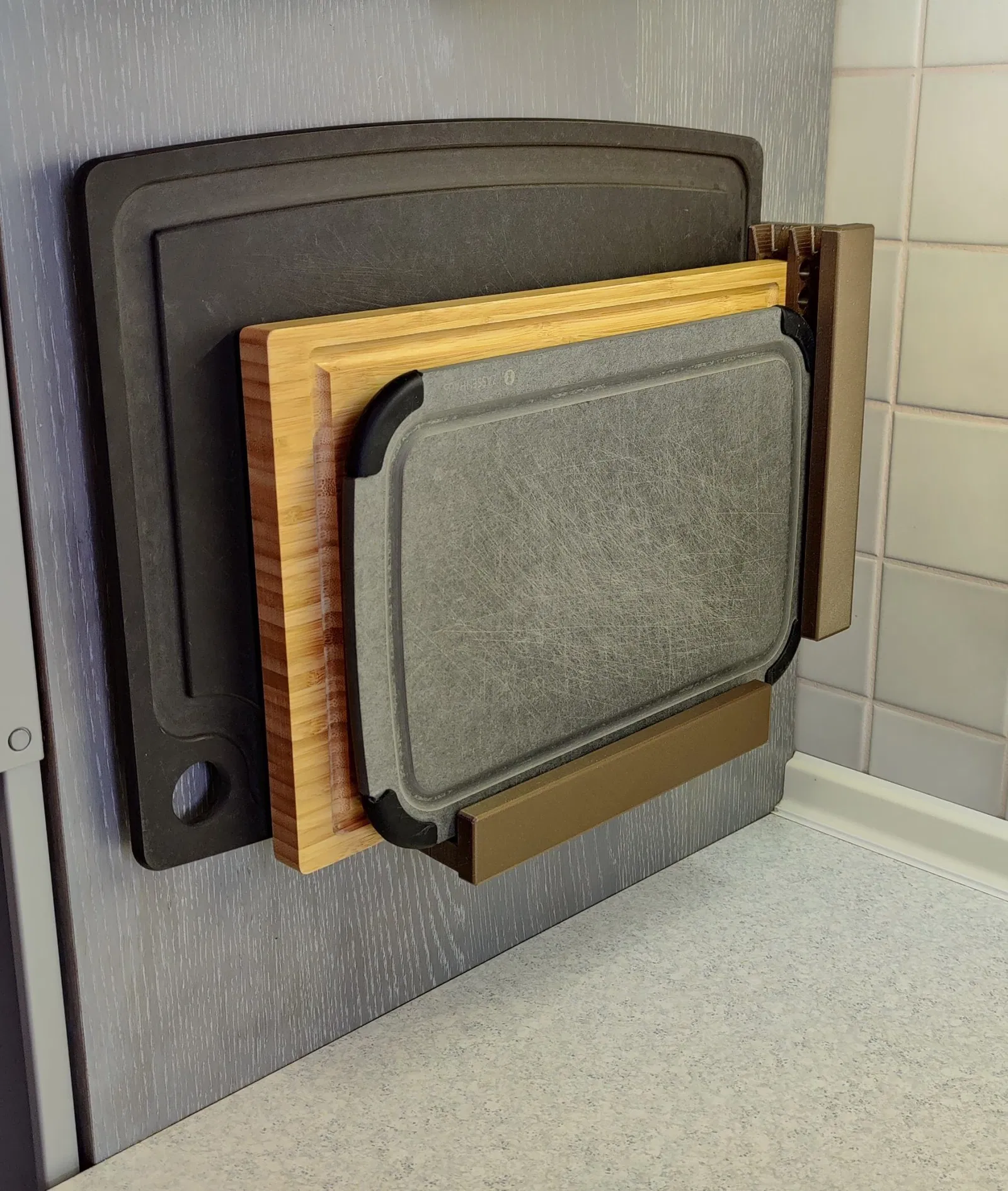 Giá đỡ thớt linh hoạt, có thể lắp đặt tùy ý, được thiết kế để chứa các tấm có độ dày lên tới 34mm. Dễ dàng tháo lắp và tái sử dụng, bạn chỉ cần in các bộ phận và sử dụng thêm ốc ren cấy M4, vít đầu trụ M4 và vít gỗ 3mm để hoàn thiện.