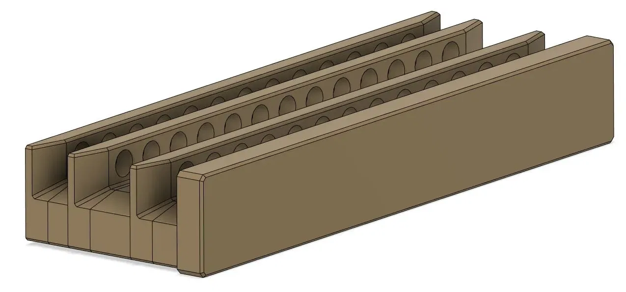 Phần thân chính (GK.stl) cần in số lượng 2 extasteriskfriend{(số khe cắm+1)} (ví dụ: 3 khe cắm = 2 extasteriskfriend{(3+1)} = 8). Các miếng đệm (T9, T10, T11, ...) cần 2 cái cho mỗi khe cắm. Miếng che (Abdeckung.stl) cần 2 cái.