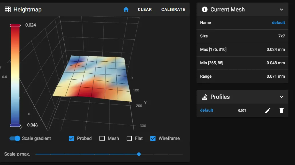 Calibrate sequence: z—tilt, then make one mesh, compare z_offset value of two rear corners, if the flying one is smaller, which means the distance between bed and rail is larger(for example,0.1mm), so unscrew the supporting M3 bolt 1/5 turn. After adjustment, z-tilt and bedmesh, check result, repeat if needed.