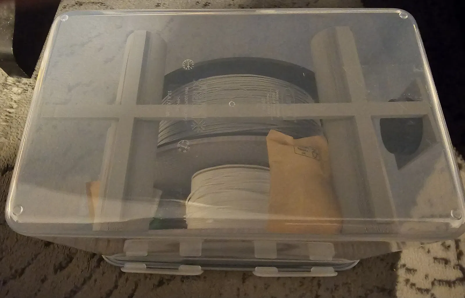 Giải pháp tối ưu cho dân chơi 3D: Giá đỡ cuộn dây PLA/ABS cho hộp Ikea 365+ 10.6l, giữ cho cuộn dây gọn gàng và tránh lăn xê. Thiết kế đơn giản, không cần bộ phận chuyển động, dễ dàng lắp đặt, kèm theo khe cắm nhiệt kế và ẩm kế để theo dõi môi trường lưu trữ. Hoàn hảo cho nhu cầu lưu trữ spool đơn giản.