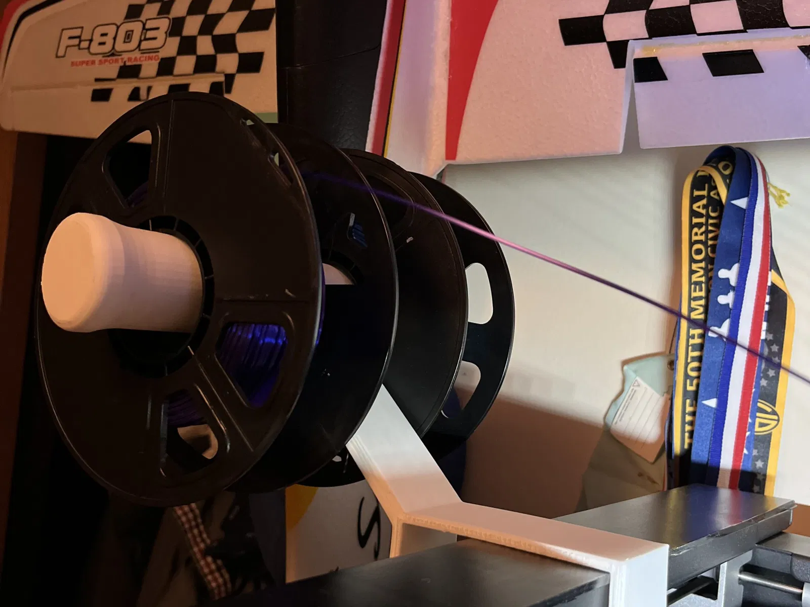 Một giá đỡ cuộn dây thay thế cho máy in 3D FlashForge Guider II. Thiết kế này giúp bạn dễ dàng hơn trong việc tháo lắp và nạp dây tóc, đặc biệt hữu ích khi máy in được đặt sát tường.