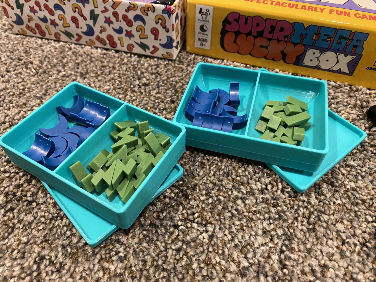 Đây là một khay đựng token có thể dùng cho nhiều trò chơi. Được thiết kế đặc biệt cho các kích cỡ thẻ của Super Mega Lucky Box và Gamewright.