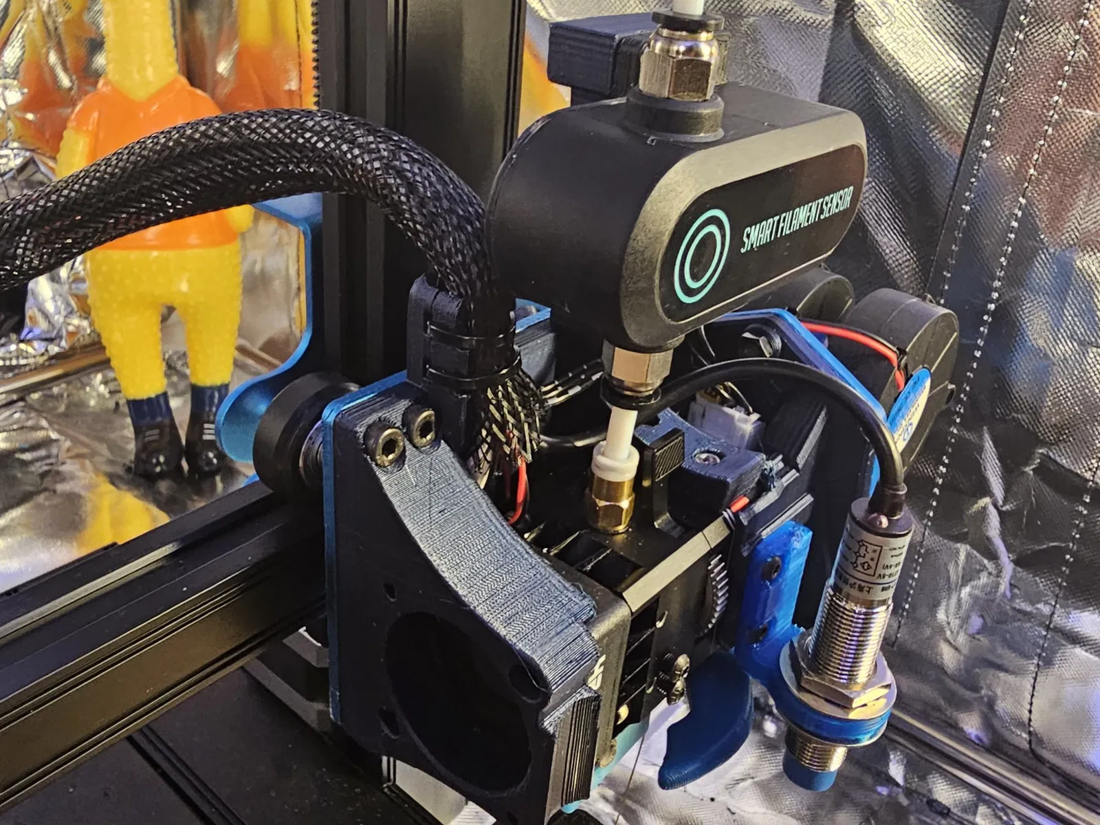 Đây là bản chỉnh sửa của tui để gắn Cảm Biến Cuộn Nhựa Thông Minh BTT phía trên bộ phận đùn nhựa. Tui đề nghị in mẫu này bằng nhựa PETG và bạn sẽ cần mấy con ốc tán M3x4 loại âm.