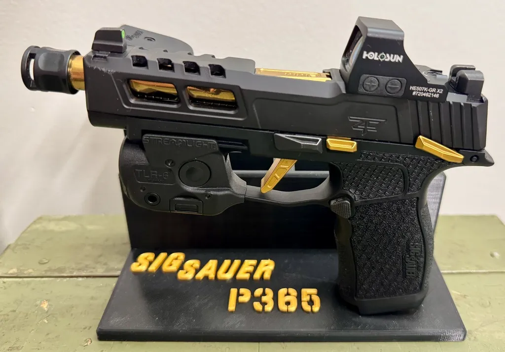 Phiên bản đế trưng bày súng lục P365, cho phép in đa sắc màu với các chi tiết logo, chữ và băng đạn tách rời. Có thêm tùy chọn bản in liền và tăng cường độ với ốc vít M3. Lý tưởng cho người yêu thích súng và in 3D.