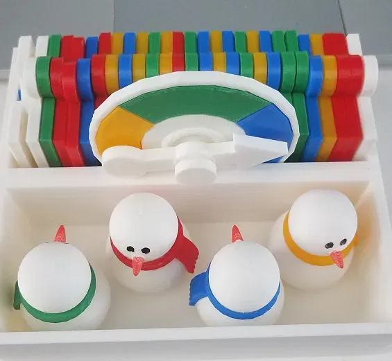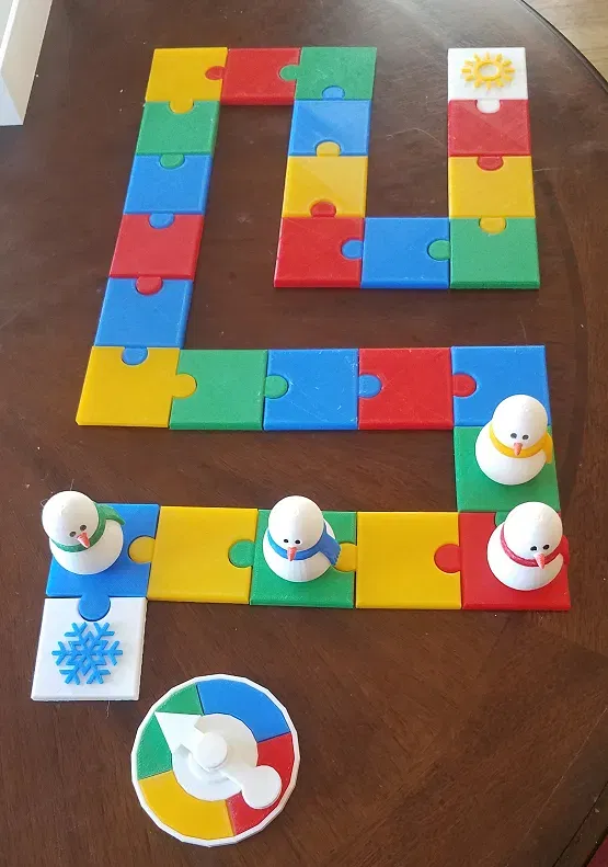 Mảnh trò chơi người tuyết: In màu trắng, ngoại trừ phần khăn quàng cổ nên có màu của bàn chơi. Lắp ráp bằng keo siêu dính.