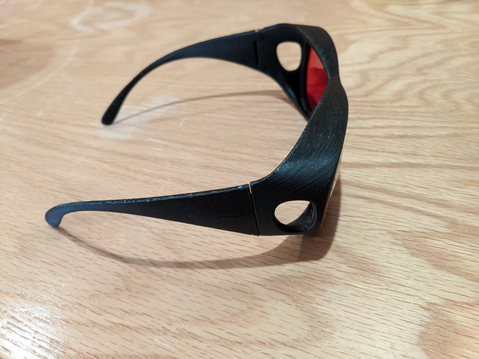 Đây là một bộ khung thay thế cho kính 3D đỏ-xanh lam kiểu phi công, có ghi nhãn ‘anachrome.com’ ở hai bên. Tôi không thể đeo vừa khung zin với kính của mình nên đã mô hình hóa cái này dựa trên vài khung ngoại cỡ khác mà tôi có.