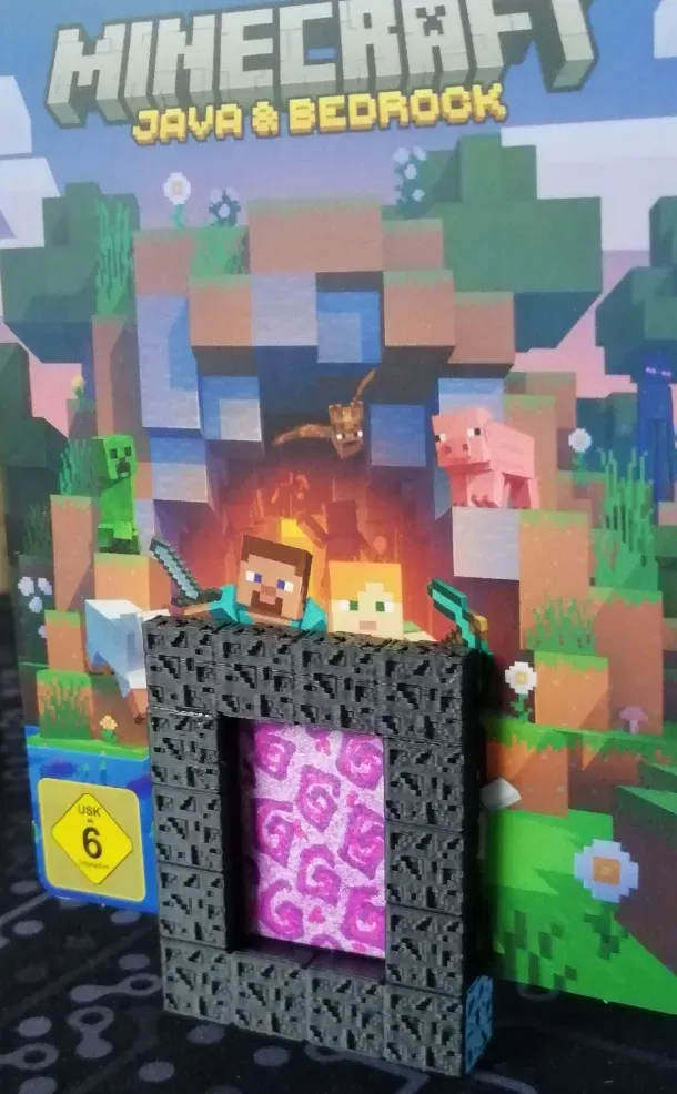 Cổng thông tin Nether Minecraft với một khe để giữ một cái gì đó giống như thẻ quà tặng