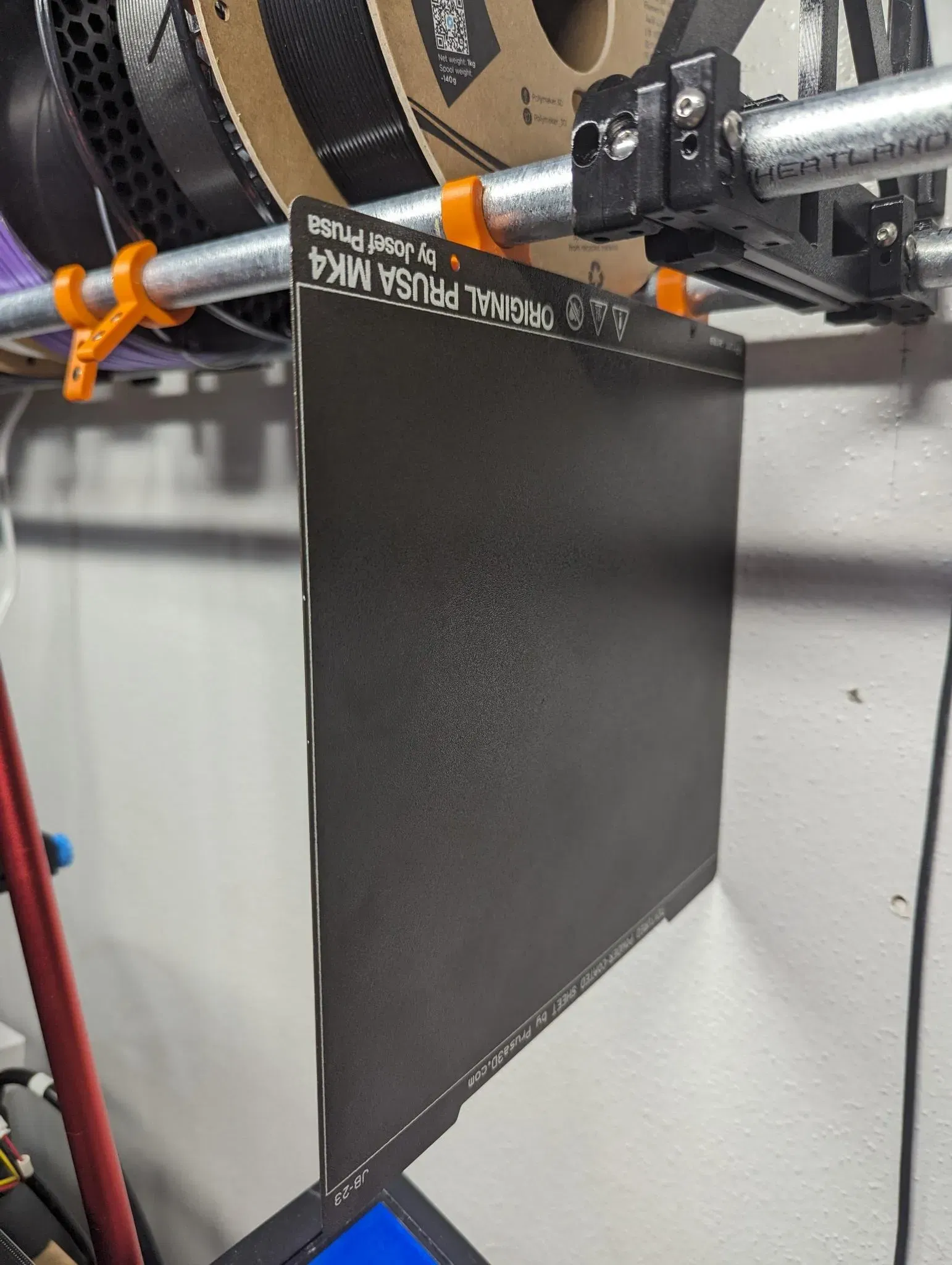 Cái giữ tấm thép lò xo nam châm cho hệ thống RepKord RepRack. Sử dụng hai (2) nam châm 60x10x3mm. Kẹp C dạng nhấn để lắp, có thể tùy chọn dùng keo. In bằng nhựa ASA trên máy Prusa MK4.