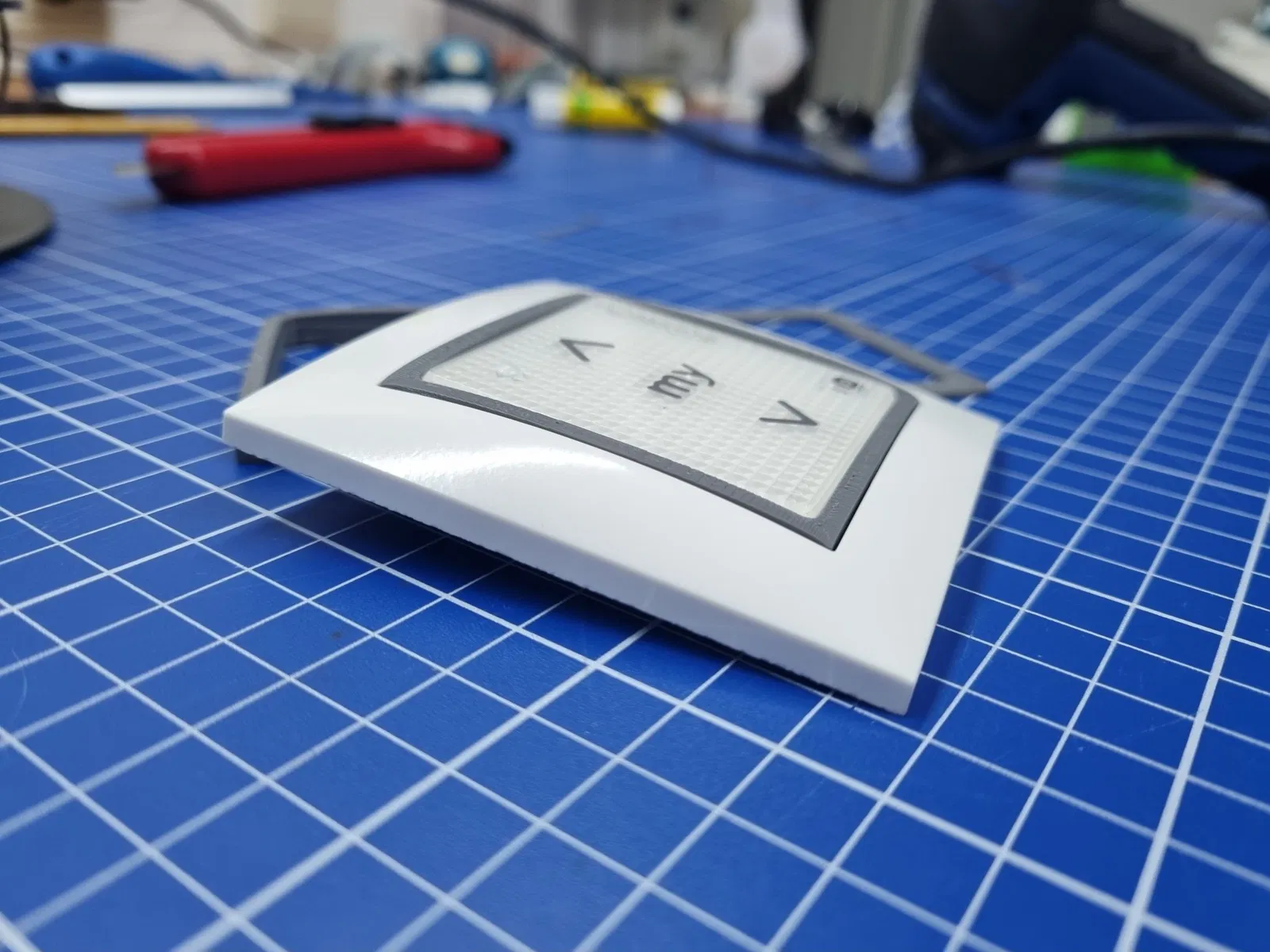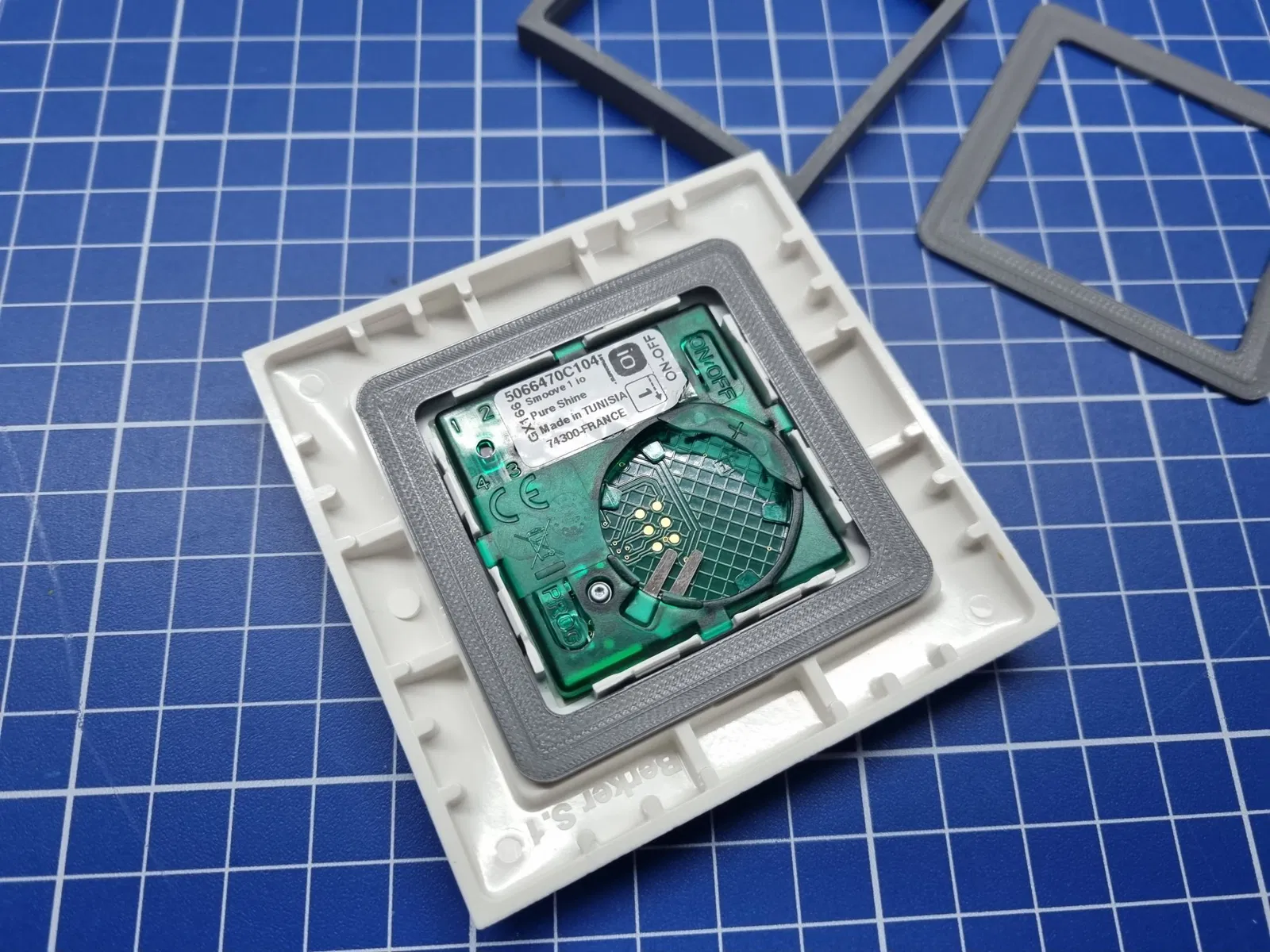 Trong trường hợp của tôi, tôi lắp đặt các điều khiển Somfy Smoove bên cạnh các công tắc đã có sẵn. Vì vậy, tôi chỉ cần một vòng để đưa Smoove vào nắp và giữ nó từ phía sau. Không cần keo dán hay vít.