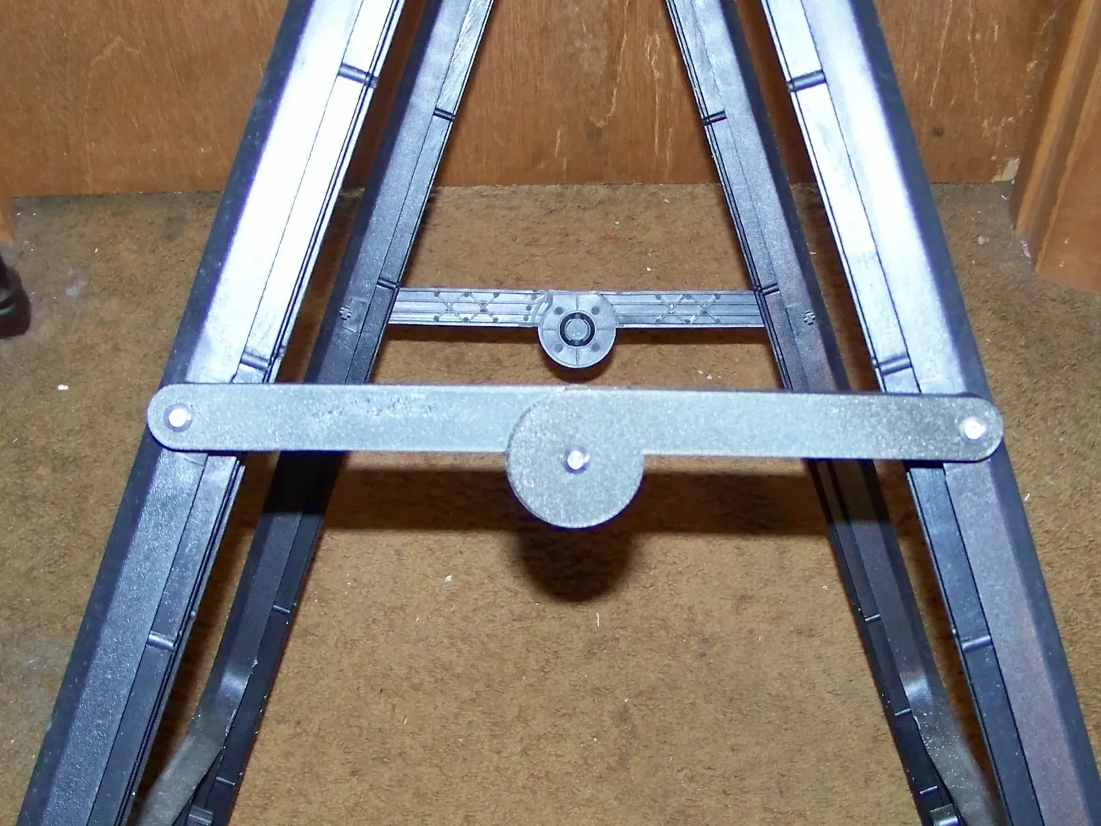 Assemble center section with big nut and tighten. Put ends in sawhorse holes. The sawhorse holes do not allow much room around them. The nuts are tapered down to just about the hole size. Lift the bracket up a little to get the nut centered and start screw through bracket into threads and tighten. There is not much room and a little tricky to do.