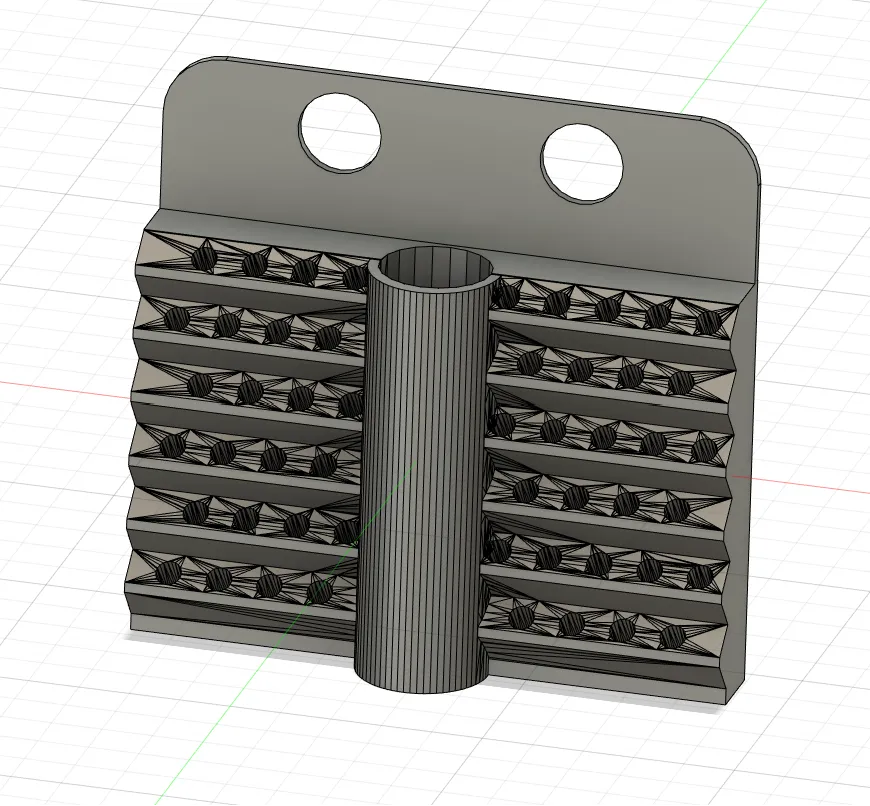 Cái mẫu gốc hay lắm, nhưng mà tui muốn gắn nó lên hệ thống Thread Boards của tui, nên tui làm cái này. Hơi tốn filament chút xíu, nhưng mà hiệu quả lắm và tiết kiệm cho tui cả đống thời gian trong Fusion 360 luôn đó.