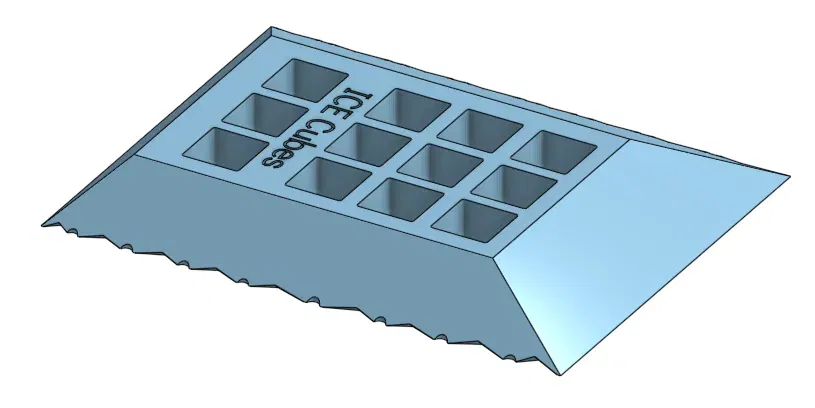 Khay đá mini bỏ túi, tích hợp sẵn chức năng cạo đá tiện lợi. Sản phẩm này có thể in bằng nhựa PLA trên máy Ender 3 với nhiệt độ đầu phun 200°C và bàn in 60°C. Thời gian in tùy thuộc vào kích thước đầu phun, khuyến nghị đầu phun 0.1mm để có chi tiết tốt nhất.