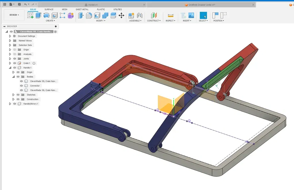 Tui có một bộ giỏ đựng đồ có thể gấp gọn này mà cái tay cầm của nó quá tệ, bị gãy hết trên mọi cái giỏ. Thế là tui thiết kế mấy cái tay cầm thay thế này.