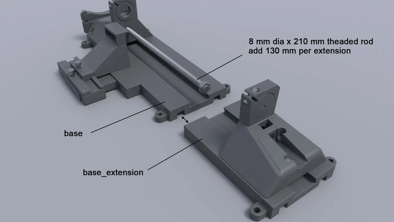 Phôi có thể có đường kính lên tới khoảng 48 mm và chiều dài khoảng 70 mm, nhưng tôi đã bao gồm một bộ phận đế mở rộng có thể tăng chiều dài thêm 130 mm (cho mỗi lần mở rộng).
