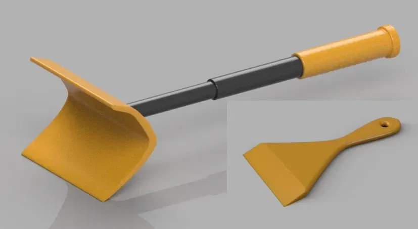 Bá tước với tay cầm kính thiên văn và cào. Lớp cày tuyết với tay cầm kính thiên văn và máy cạo băng.