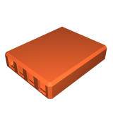 Vỏ gồm 2 mảnh, với thân chính để trượt bo mạch vào và nắp đậy có thể gài vào.